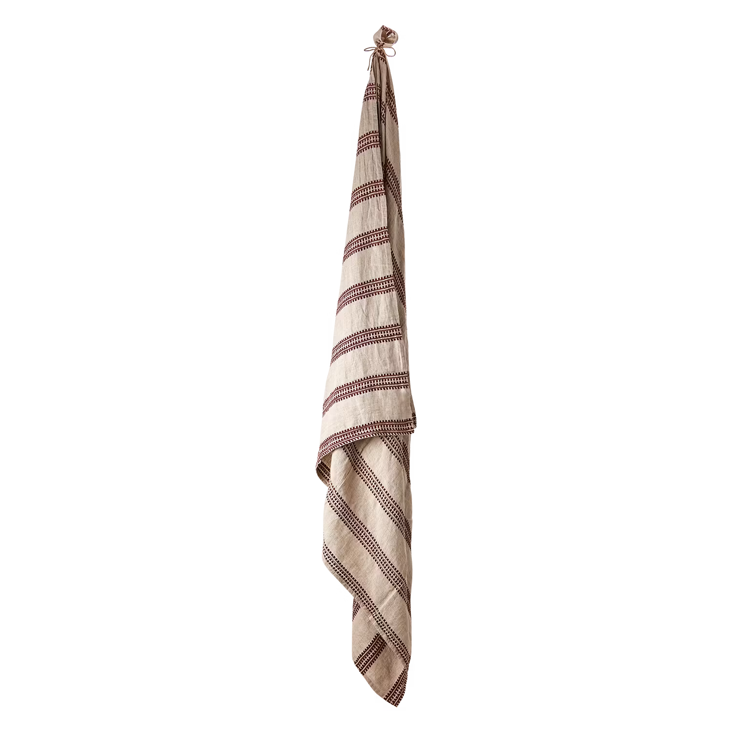 Ge dukningen en varm och hemtrevlig känsla med denna vackra bordsduk i bomull och linne. Den har en naturlig, rustik struktur med en harmonisk färgkombination av rött och lingrått, perfekt för både vardag och fest.