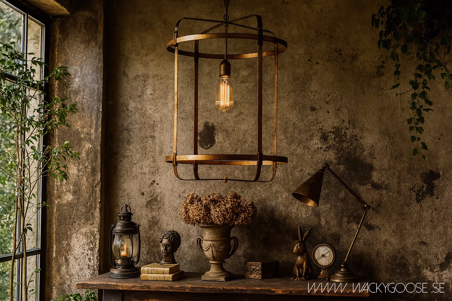Elegant lampstomme i mässingfärgad järn - en perfekt bas för att skapa din egen unika lampa. Den öppna konstruktionen ger ett luftigt och industriellt uttryck, samtidigt som färgtonen i mässing tillför värme och karaktär.