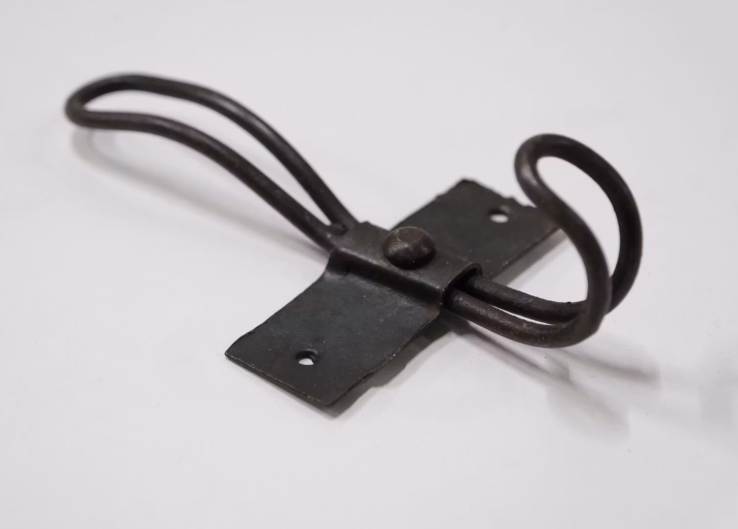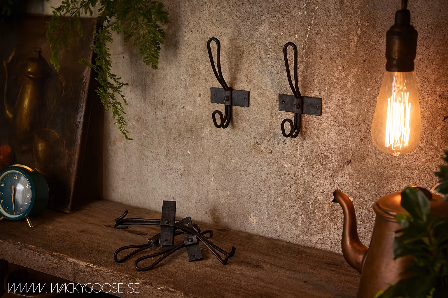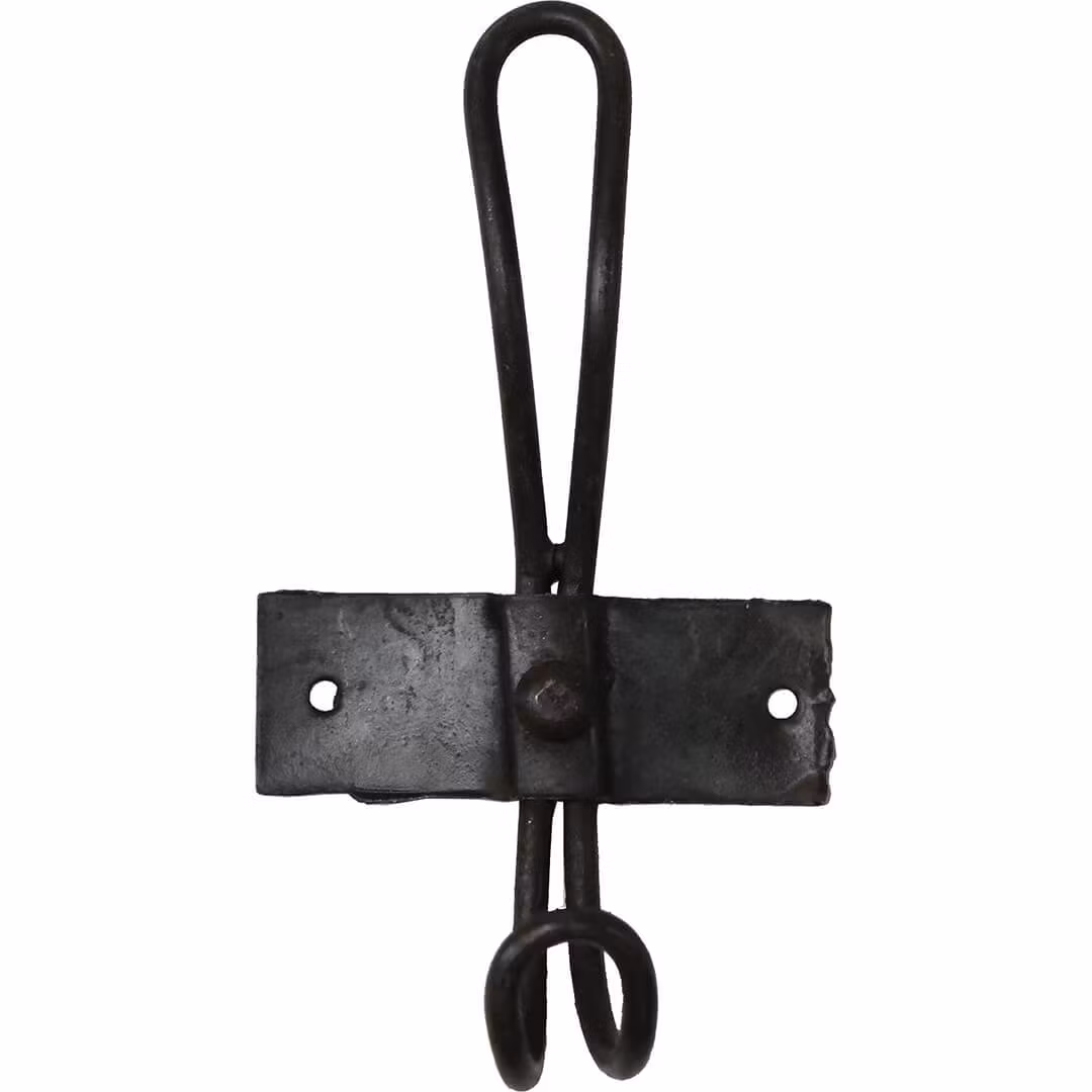 Vacker krok i råjärn. Kroken har två skruvhål och du kan använda kroken ensam till t.ex. din badrock i sovrummet, eller hänga flera tillsammans i hallen för ytterkläder eller i badrummet för handdukar. Du kan också skruva fast flera av krokarna på en bräda och göra din egen klädhängare med den träfärg som passar dig.