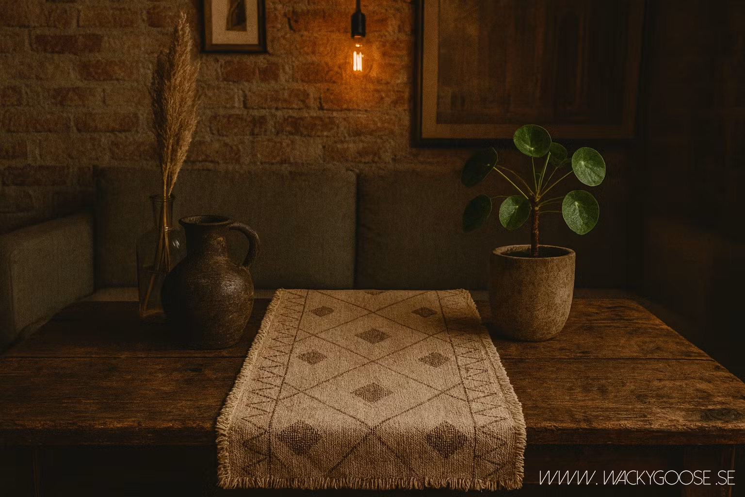 Ge ditt bord el make-over på två sekunder! Den här stilrena löparen i svart jute är den perfekta inredningsdetaljen för att skapa en rustik, elegant och lite dramatisk dukning - oavsett om det är vardagsmiddag eller fest.