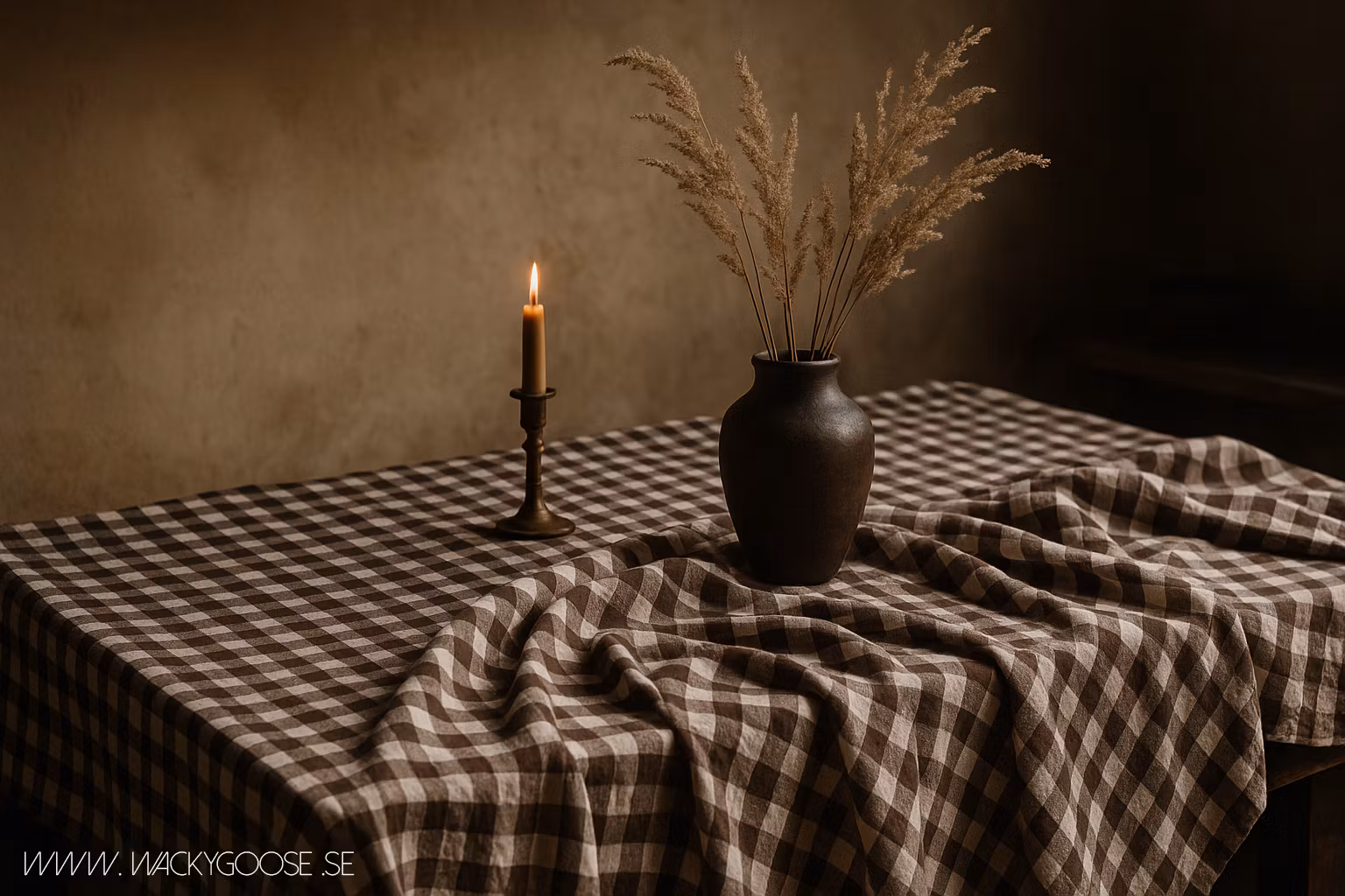 Rustik bordsduk i 100% bomull med stilrent rutmönster i brunt och elfenben. Perfekt till både vardag och fest för att skapa en varm och ombonad känsla för köket eller matsalen.