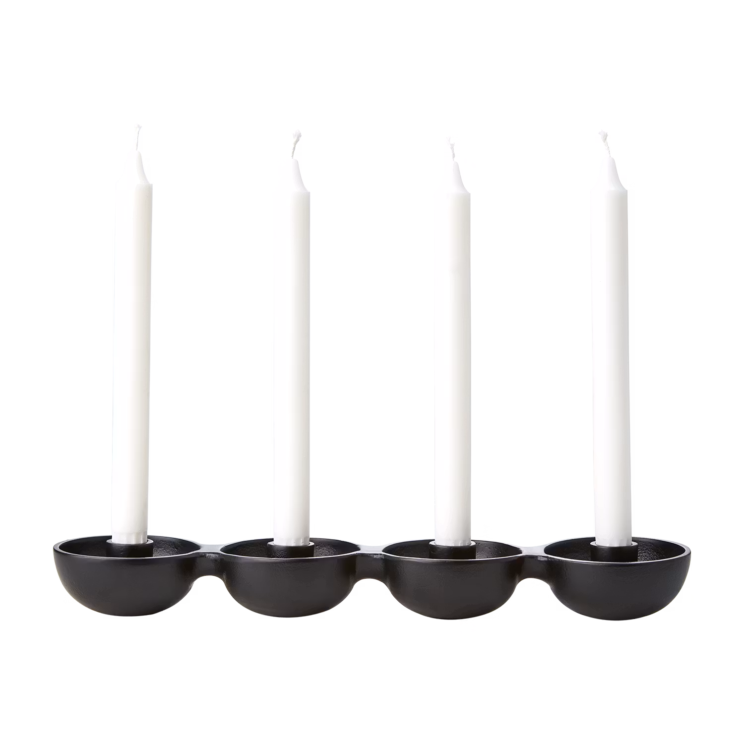 Plats för fyra ljus - en för varje adventssöndag, eller alla på en gång om du inte kan hålla dig! Tidlös svart finish som passar till både rustik juldukning och modern inredning - och dessutom stabil design som står stadigt även när glöggen flödar runt bordet!