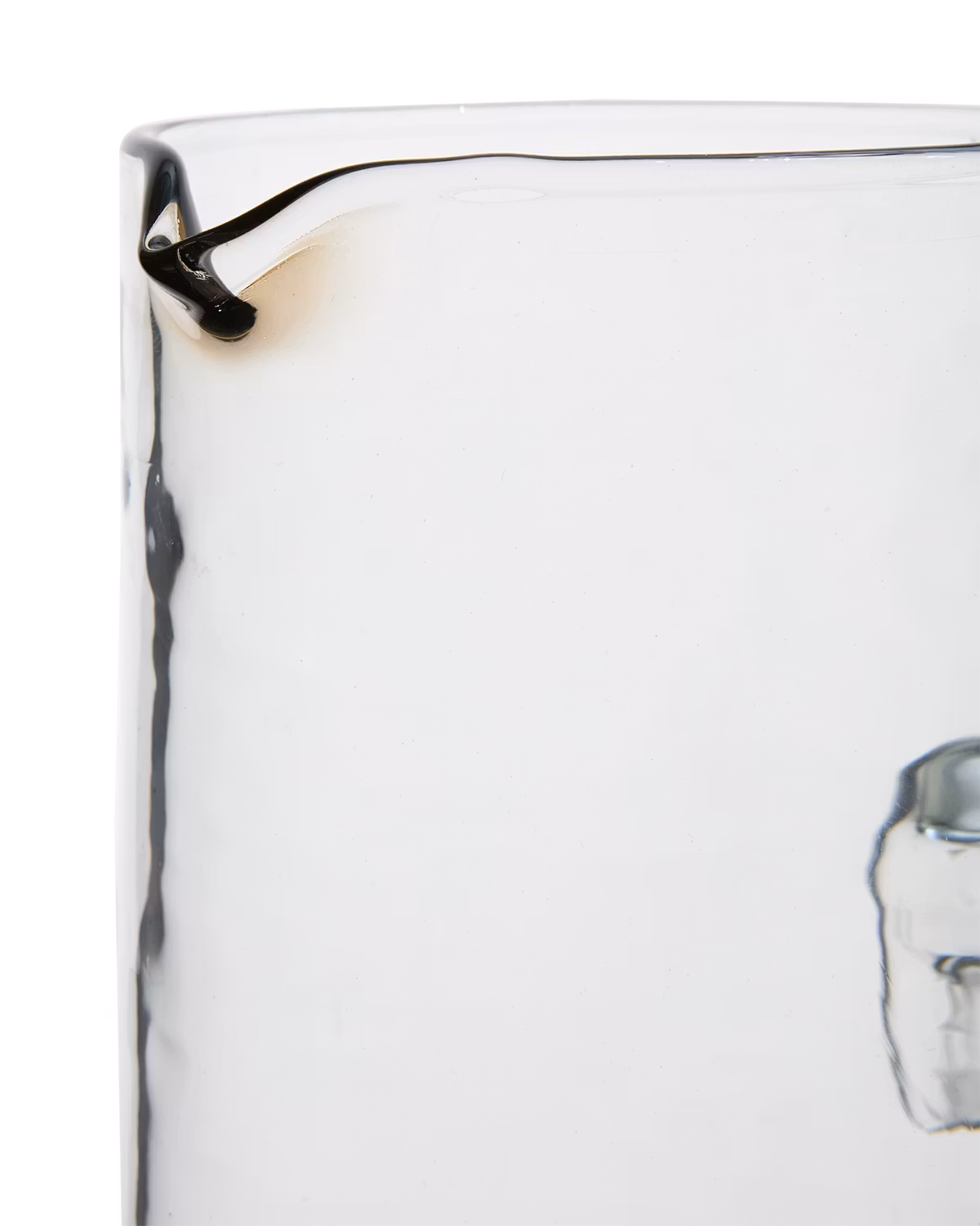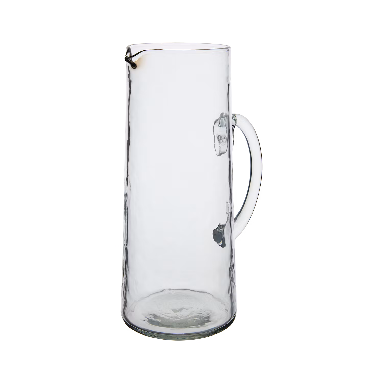 En vacker handgjord kanna i glas som passar lika bra till vardag som till fest. Varje kanna är munblåst, vilket gör att små bubblor och ojämnheter kan förekomma - och just det är charmen som gör varje exemplar helt unikt.