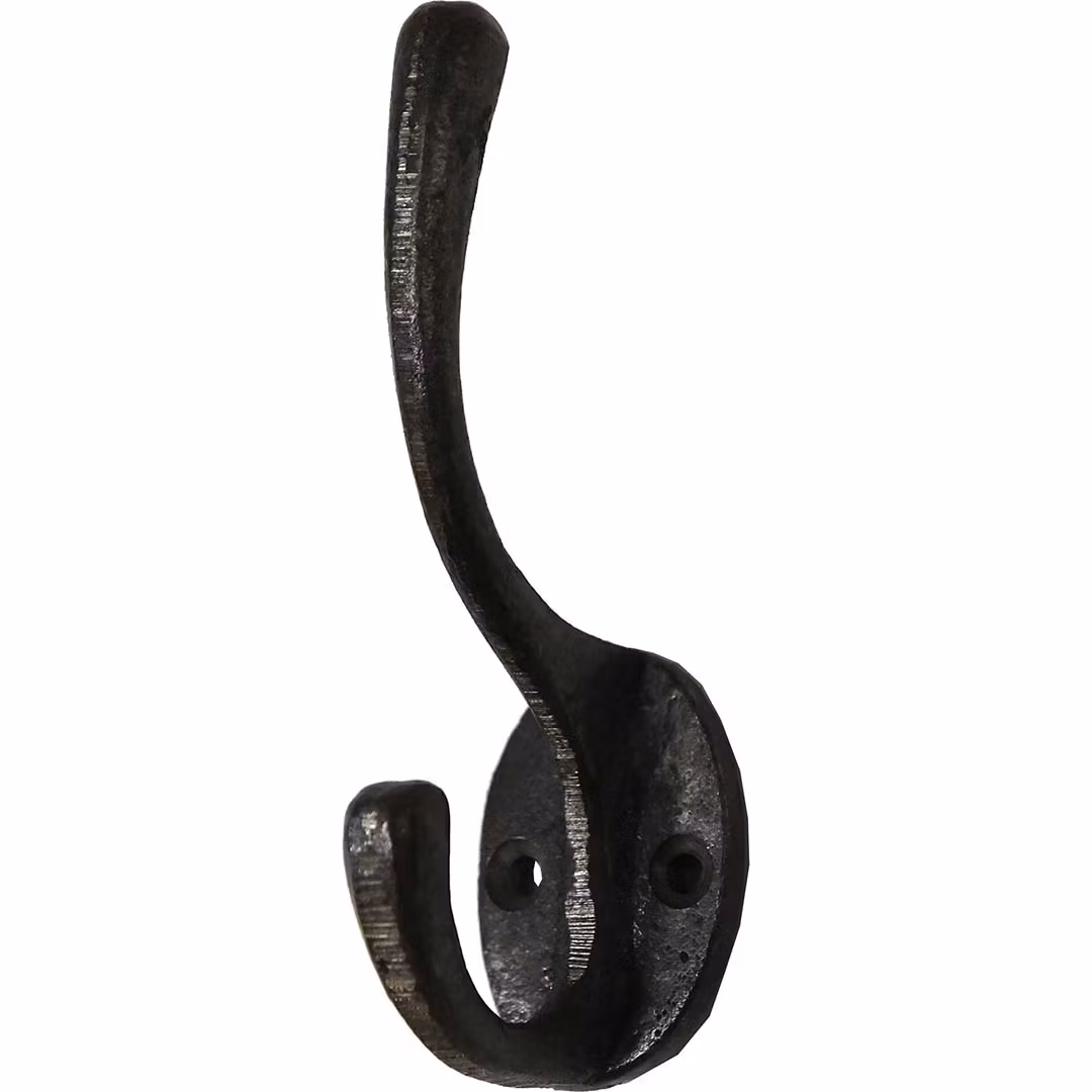 Enkel och rustik dubbelkrok i järn. Häng en eller flera på samma vägg och skapa din egen klädhylla för familj och vänner. Kroken kan även användas i andra rum i hemmet. Använd den till kökshanddukar, smycken, halsdukar, väskor och accessoarer. De två borrhålen säkerställer enkel montering. Små ojämnheter på kroken ger extra charm och ett rått utseende.