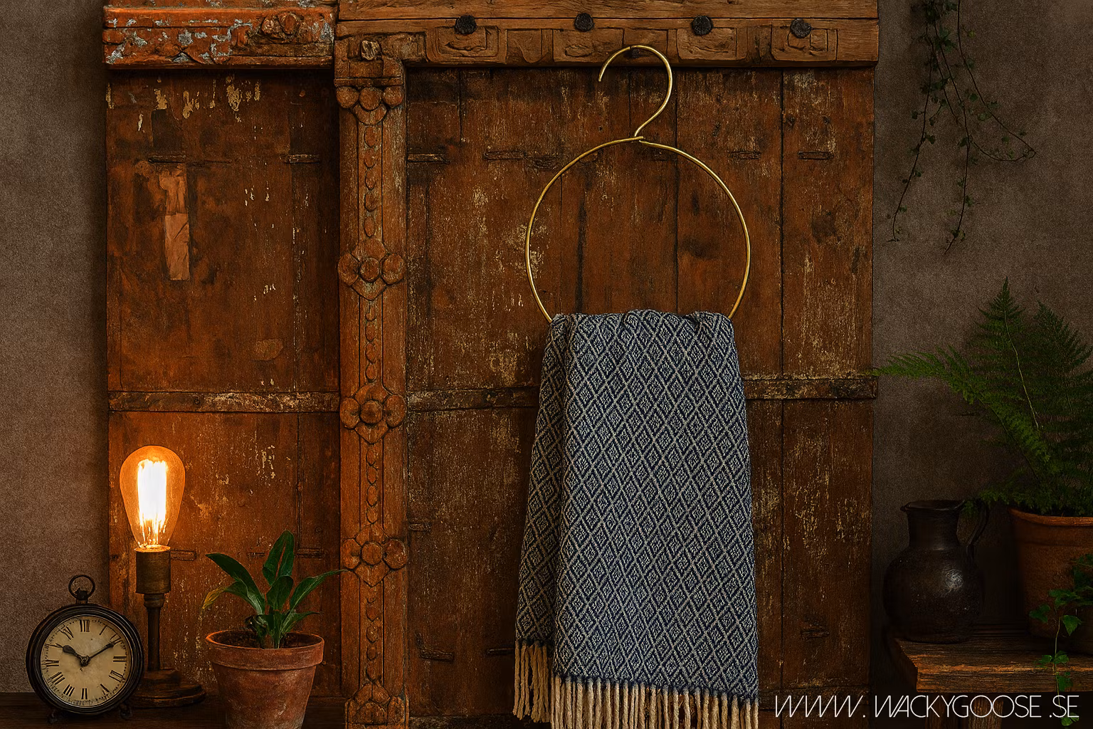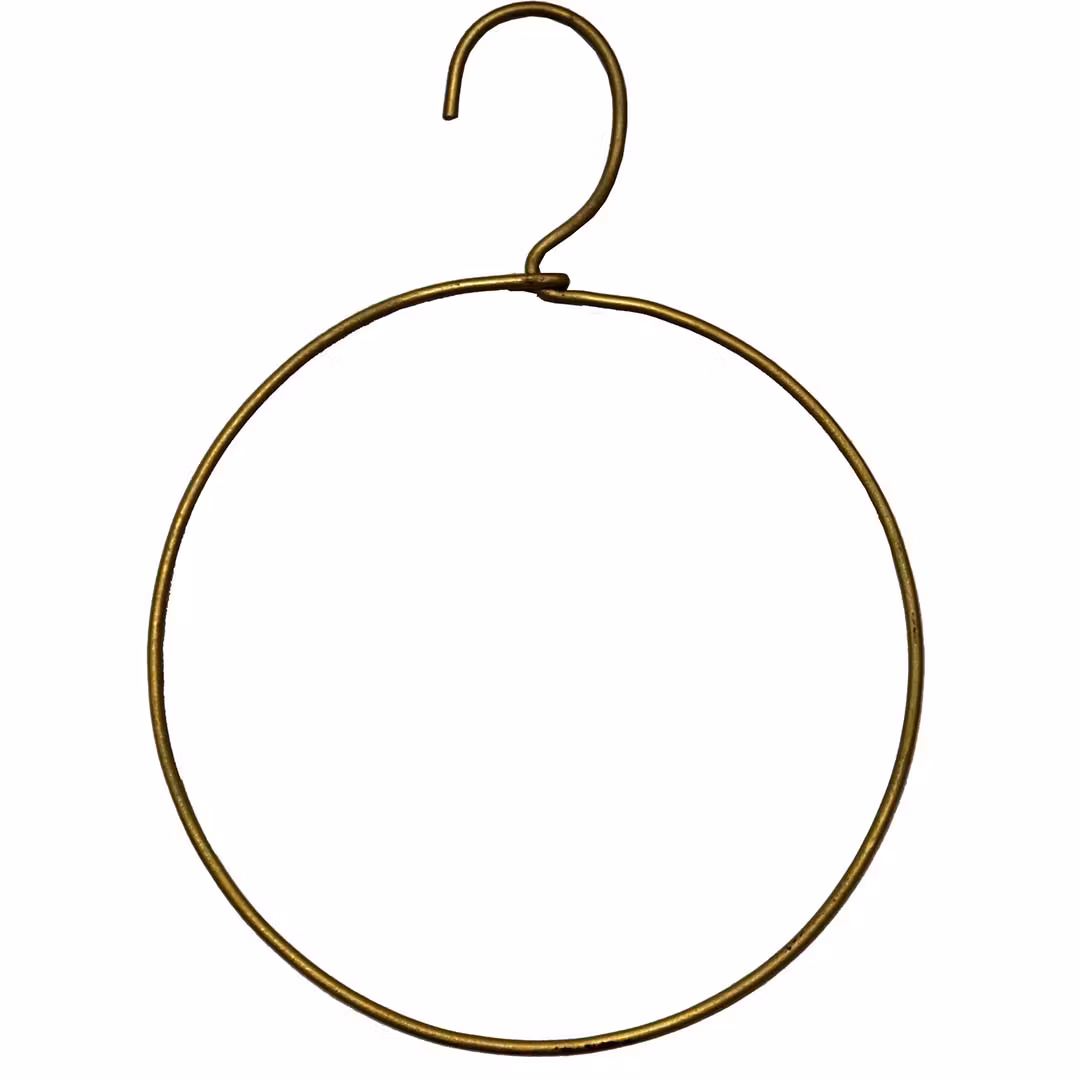 Denna tunna mässingsfärgade metallgalge är böjd i ett stycke. Den runda formen ger ett lätt och enkelt utseende. Galgen tar inte upp mycket plats i din garderob eller på din klädställning, och den är perfekt för halsdukar, strumpbyxor eller bälten. Den runda galgen kan också användas i badrummet för handdukar. En rund galge är idealisk för blomsterarrangemang, både med färsk grönska eller vackra evigblommor. Galgen kan hängas och dekoreras på din ytterdörr eller var du än vill.