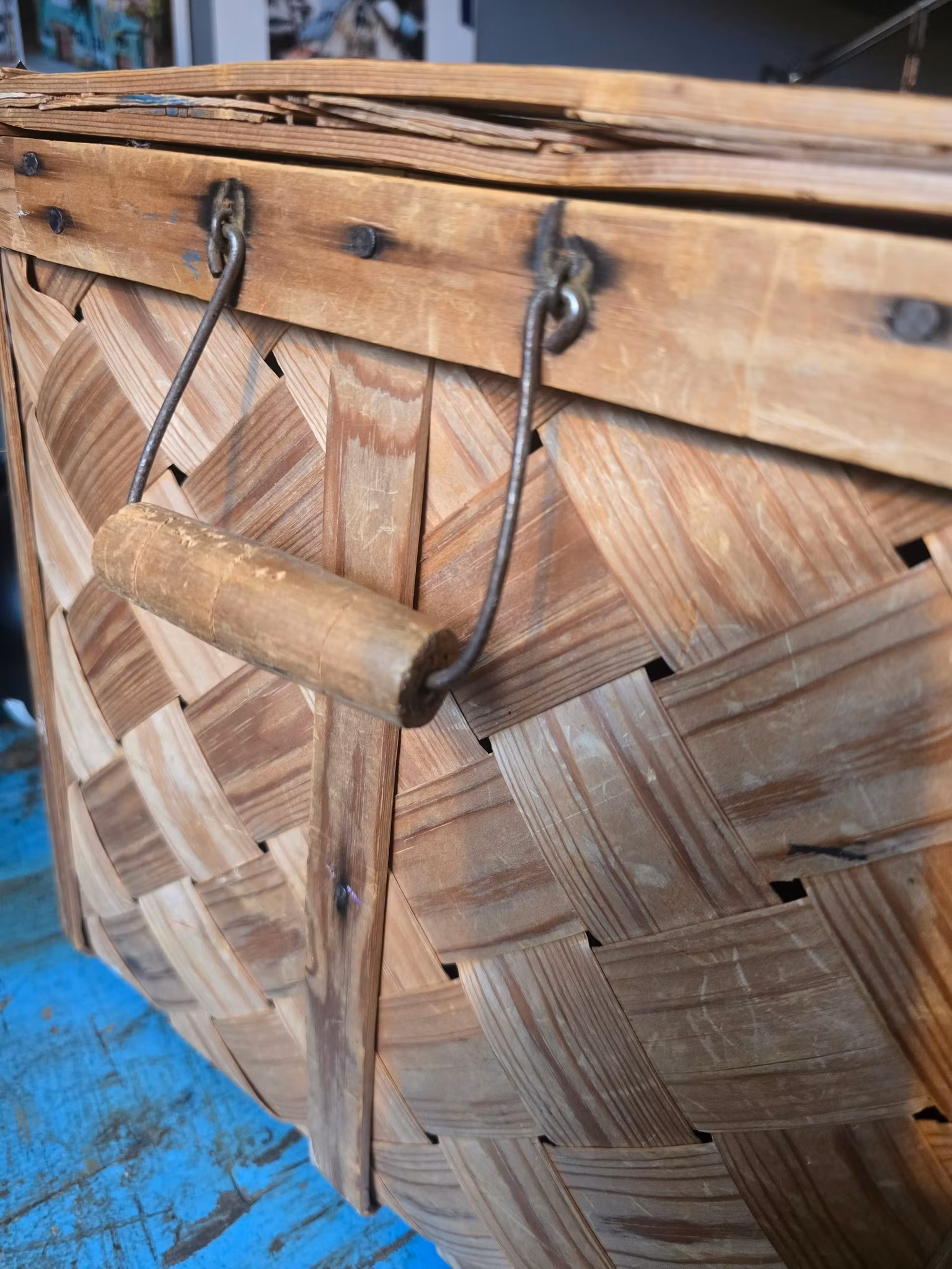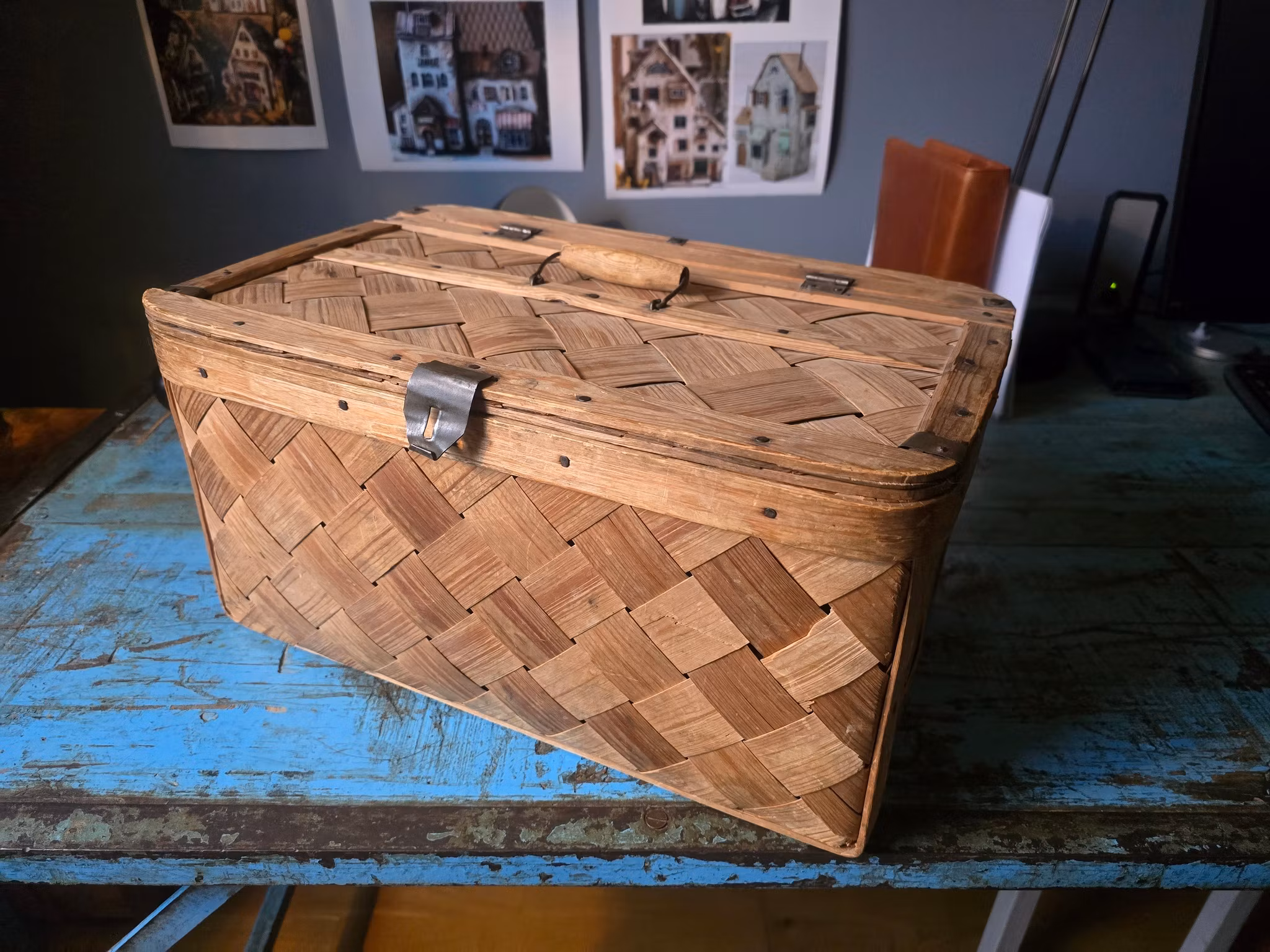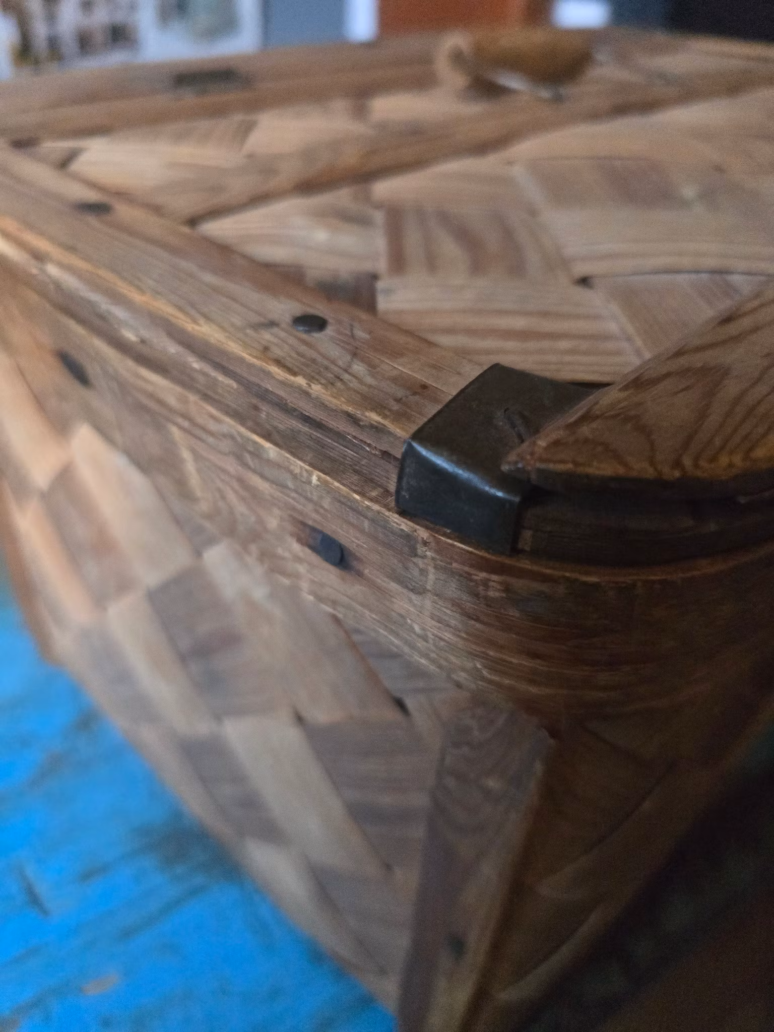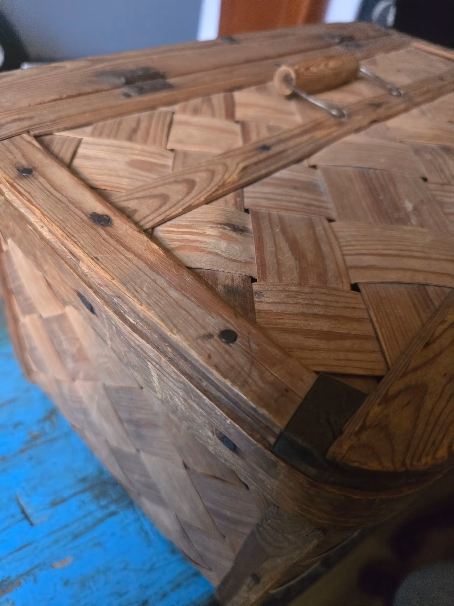 Gammal mellan korg/kista 599 kr I lager. Lägg i korgen Dela Produktbeskrivning Recensioner Vacker gammal kista/låda med handtag och lock.Längd 53cmBredd 31cmHöjd 29cm