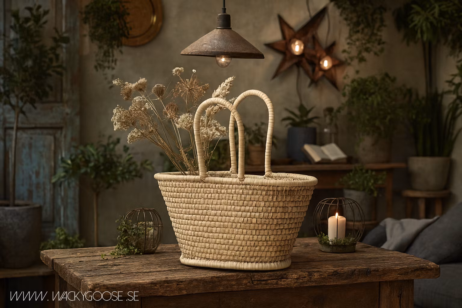 Varje exemplar är unikt och flätat för hand av hantverkare på den afrikanska landsbygden. Storlek, färg och form varierar.