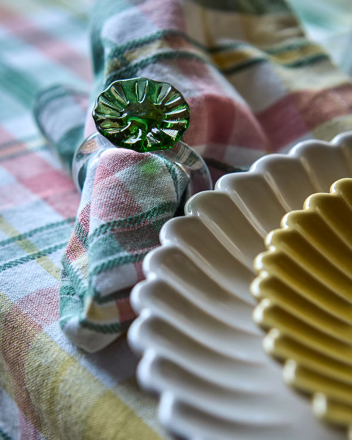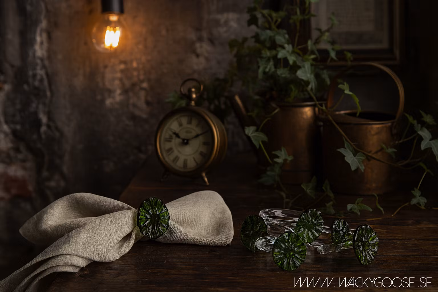 Handgjord servettring i glas, Klar, 8-pack, Grön