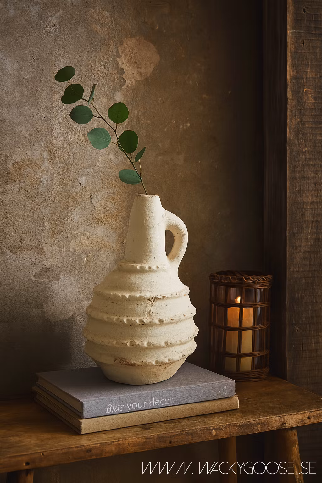 Perfekt som centerpiece på golvet, i hallen eller vid ett rustiks sideboard. Kombinera gärna med andra naturmatierial som trä, linne och metall för en harmonisk känsla.