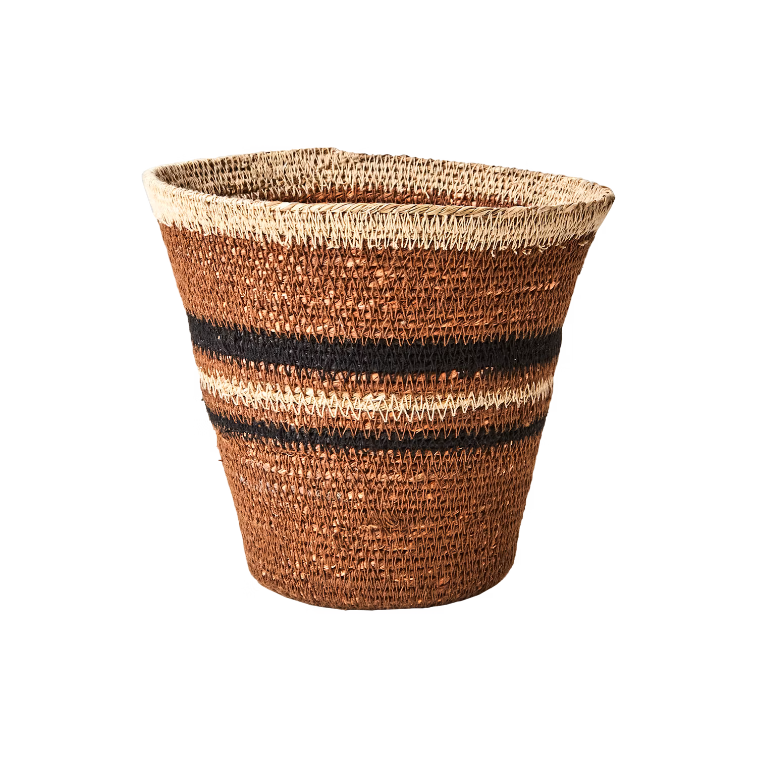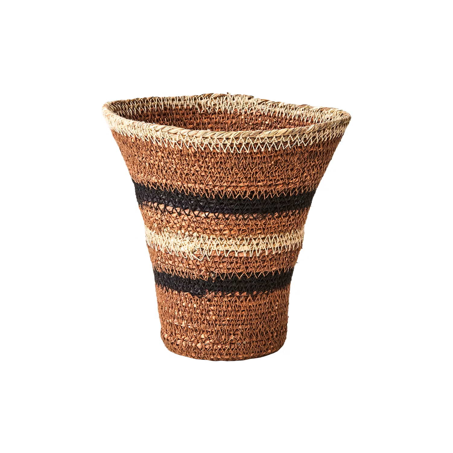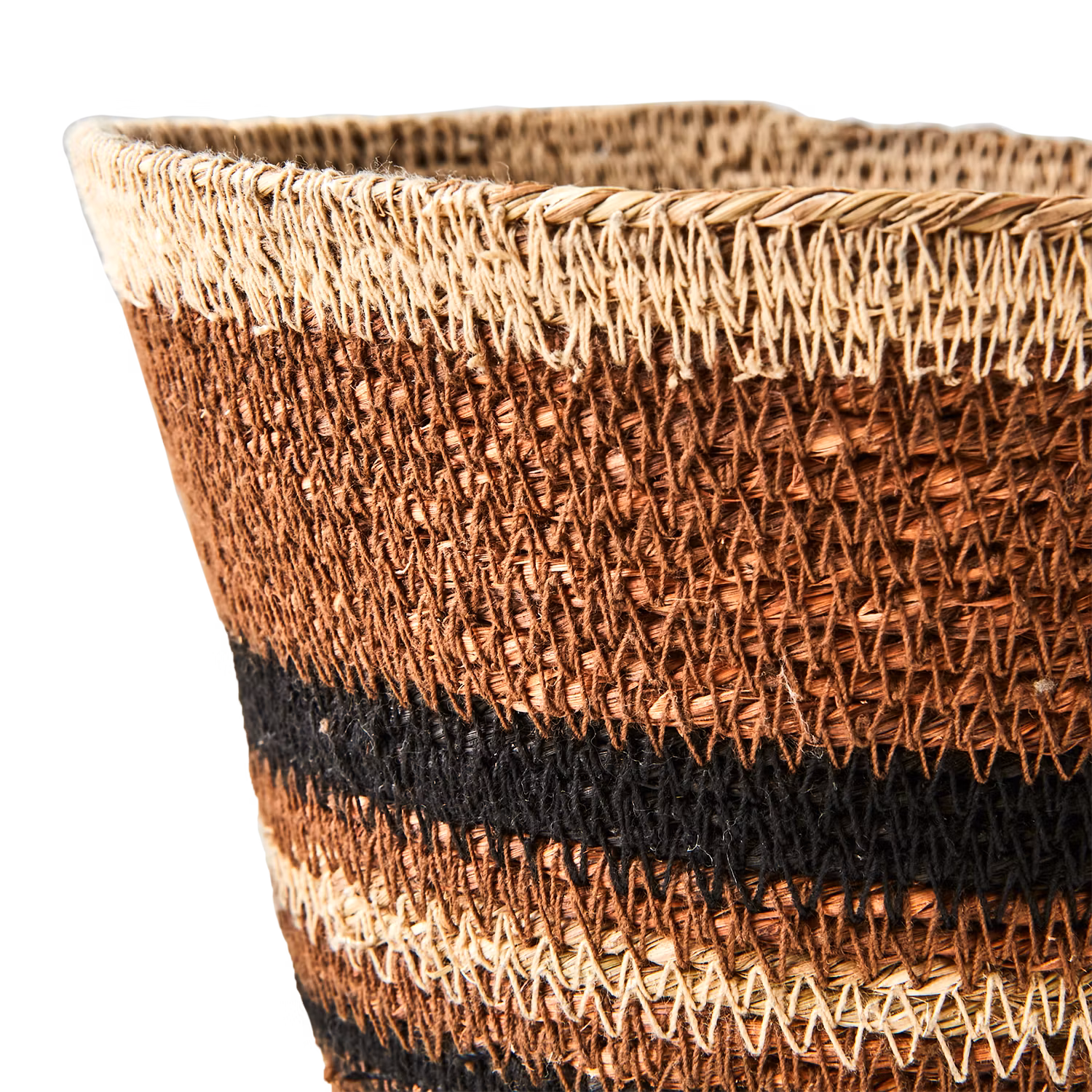 Lyft känslan i ditt rum med ett set om 3 vackra, handsydda korgarna - tillverkade av slitstarkt, naturligt sjögräs och de olika naturnyanserna i svart, rost och beige ger extra karaktär till varje korg. Perfekt för dig som vill addera en rustik, bohemisk eller skandinavisk känsla till hemmet.