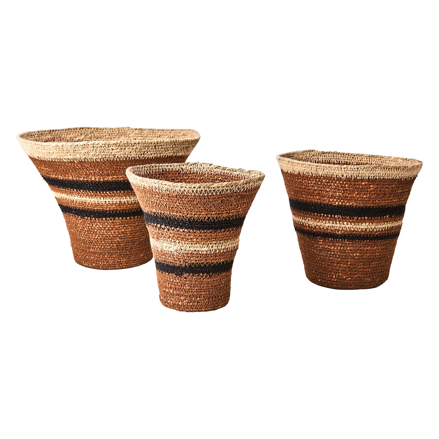 Handsydda Mabida-korgar i sjögräs, Set om 3, Brun/Beige/Svart