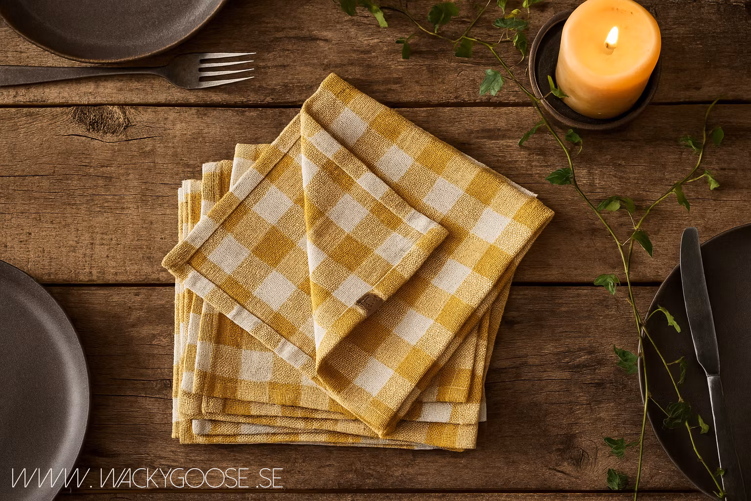 Duka som ett proffs - utan att anstränga dig. Dessa servetter i 100% bomull kommer i ett set om 4 och har ett klassiskt rutmönster som ger din dukning både värme och stil. Perfekta till allt från vardagsmiddagen till högtidens festmåltider.