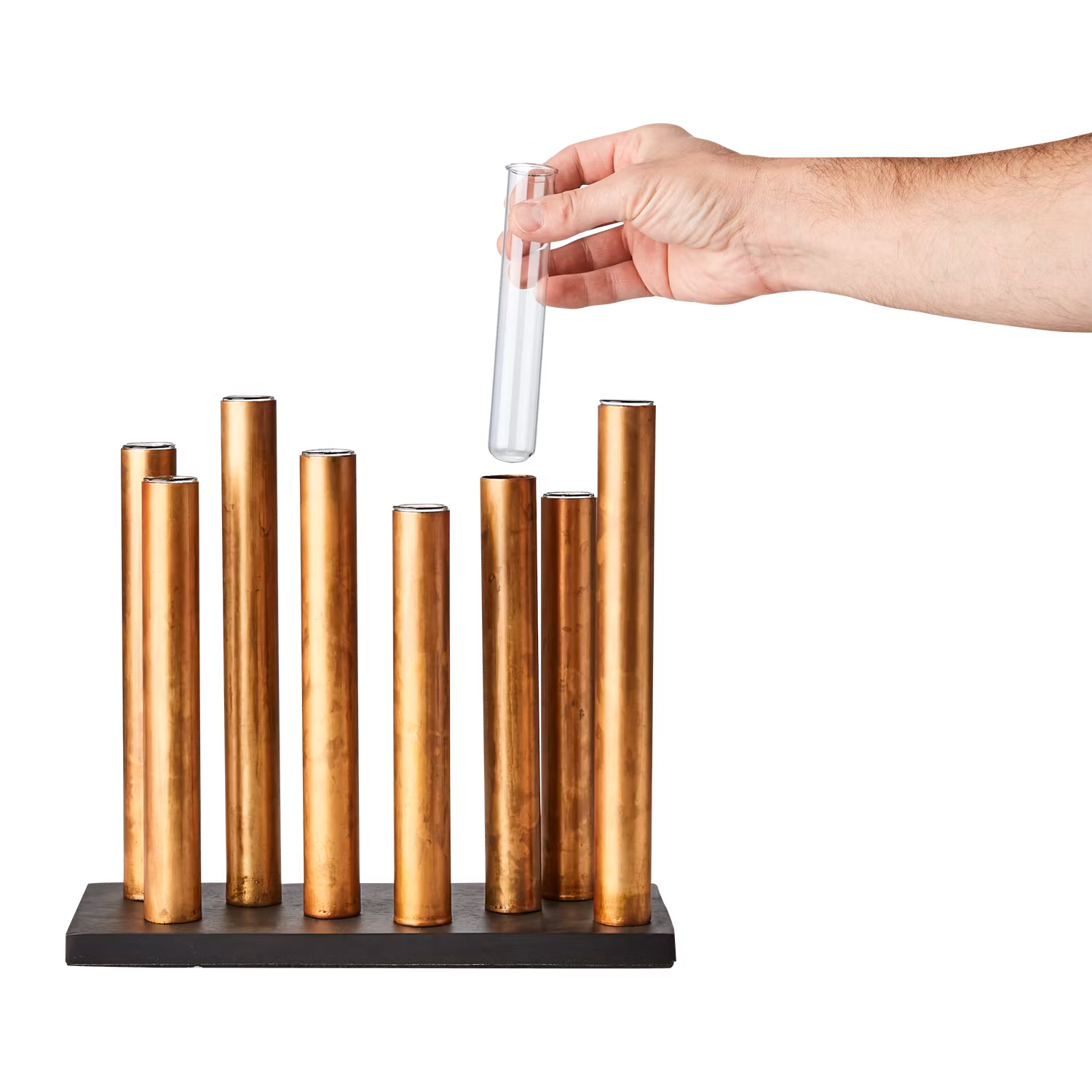 PIPER Ljusstake/vas, Kopparfärgad/svart 869 kr I lager. Lägg i korgen Dela Produktbeskrivning Recensioner Färgnyans Kopparfärgad/svartØ2,2 cm ljusMaterial Järn, trä, glasStorlek: L30xW12xH28 cmVarumärke: Affari