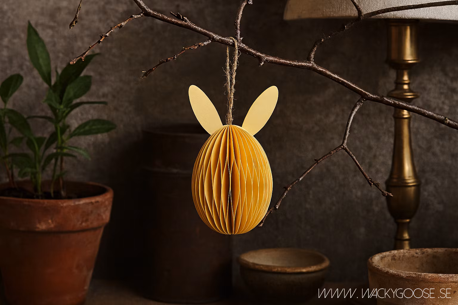 En charmig handgjord påskdekoration i vacker färg, fomrad i papper med magnetfäste. Perfekt att hänga i påskris, dekorera bordet med eller hänga i girlanger för en lekfull vårkänsla.