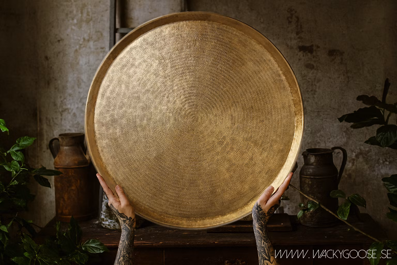Ge din inredning en varm och lyxig känsla med detta vackra dekorationsfat i färgat aluminium. Den eleganta formen och den mjukt skimrande ytan gör det perfekt för att framhäva ljus, små vaser eller dekorativa detaljer.