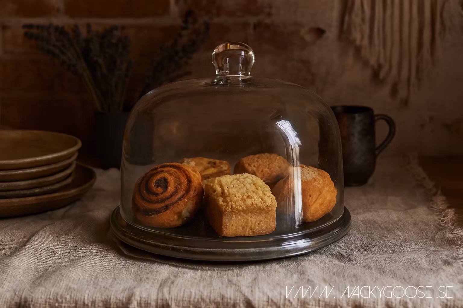 Elegant munblåst glaskupa som kombinerar tidlös design med hantverkskänsla. Perfekt för att framhäva  och skydda bakverk, ost, frukt eller dokorativa arrangemang. Varje kupa är unik, med små bubblor och naturliga ojämnheter som är ett bevis på det gedigna hantverket.