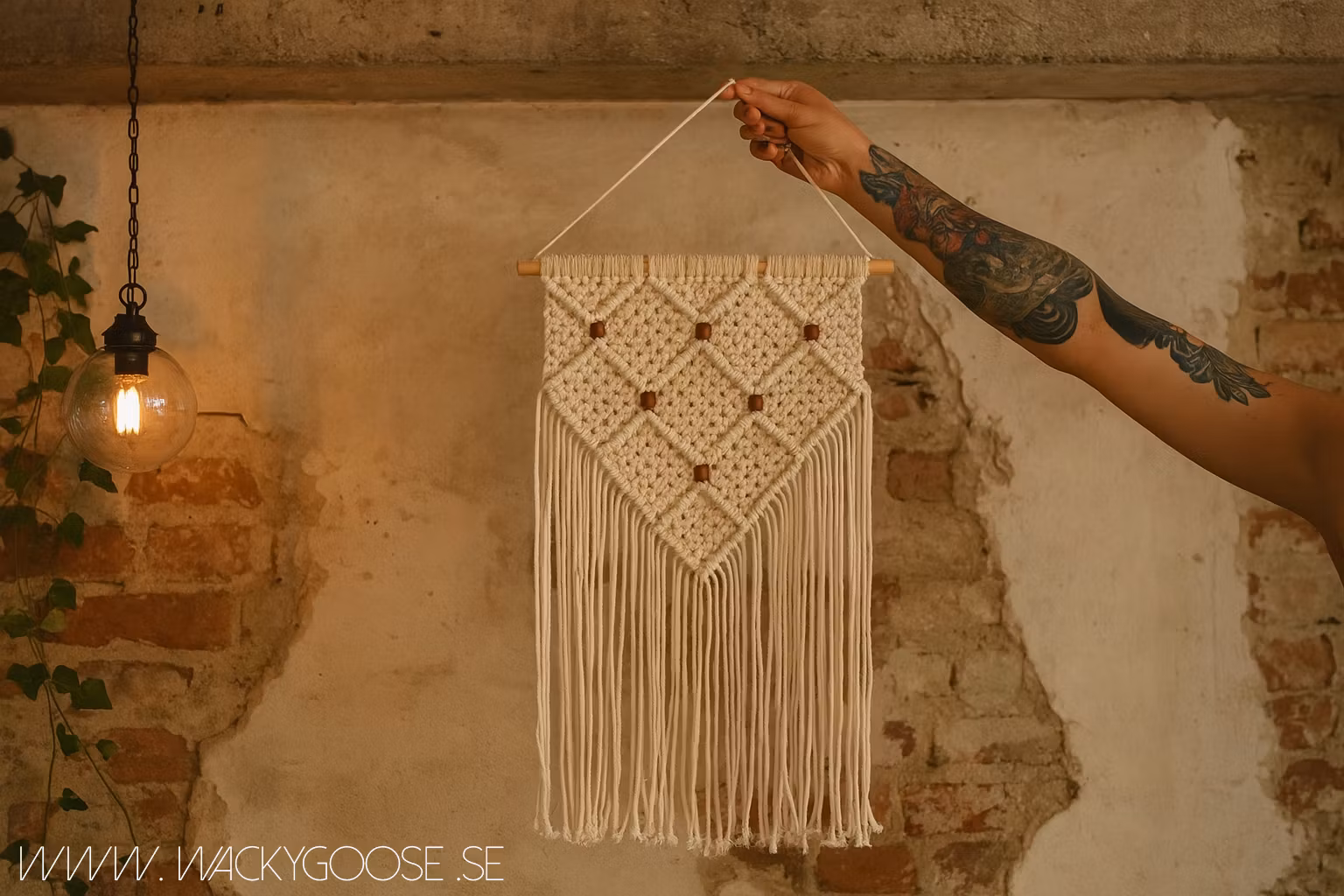 Den taktila strukturen och de klassiska fransarna gör den till en dekorativ detalj som förhöjer vilket rum som helst - perfekt i vardagsrummet, sovrummet eller hallen. Väggdekorationer ger rummet en ombonad och rustik känsla som är lätt att matcha med annan inredning.