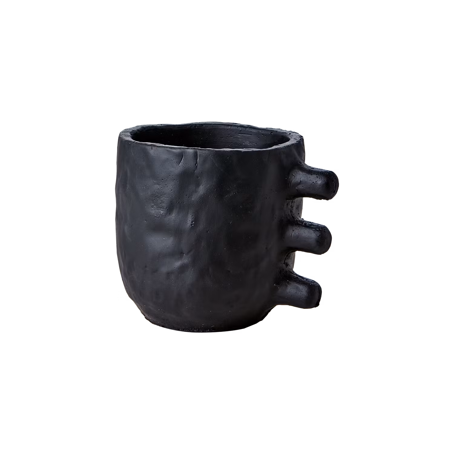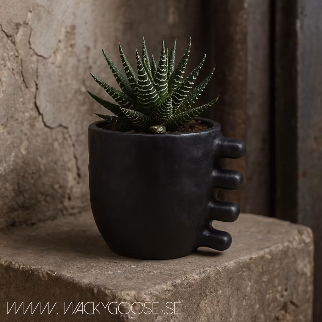 Det här är inte bara en kruka - den är ett statement. Med sin mattsvarta finish och ojämna struktur skapar den både värme, attityd och en lekfull känsla i rummet. Den perfekta krukan för dig som vill ge dina växter en personlig oas med karaktär.