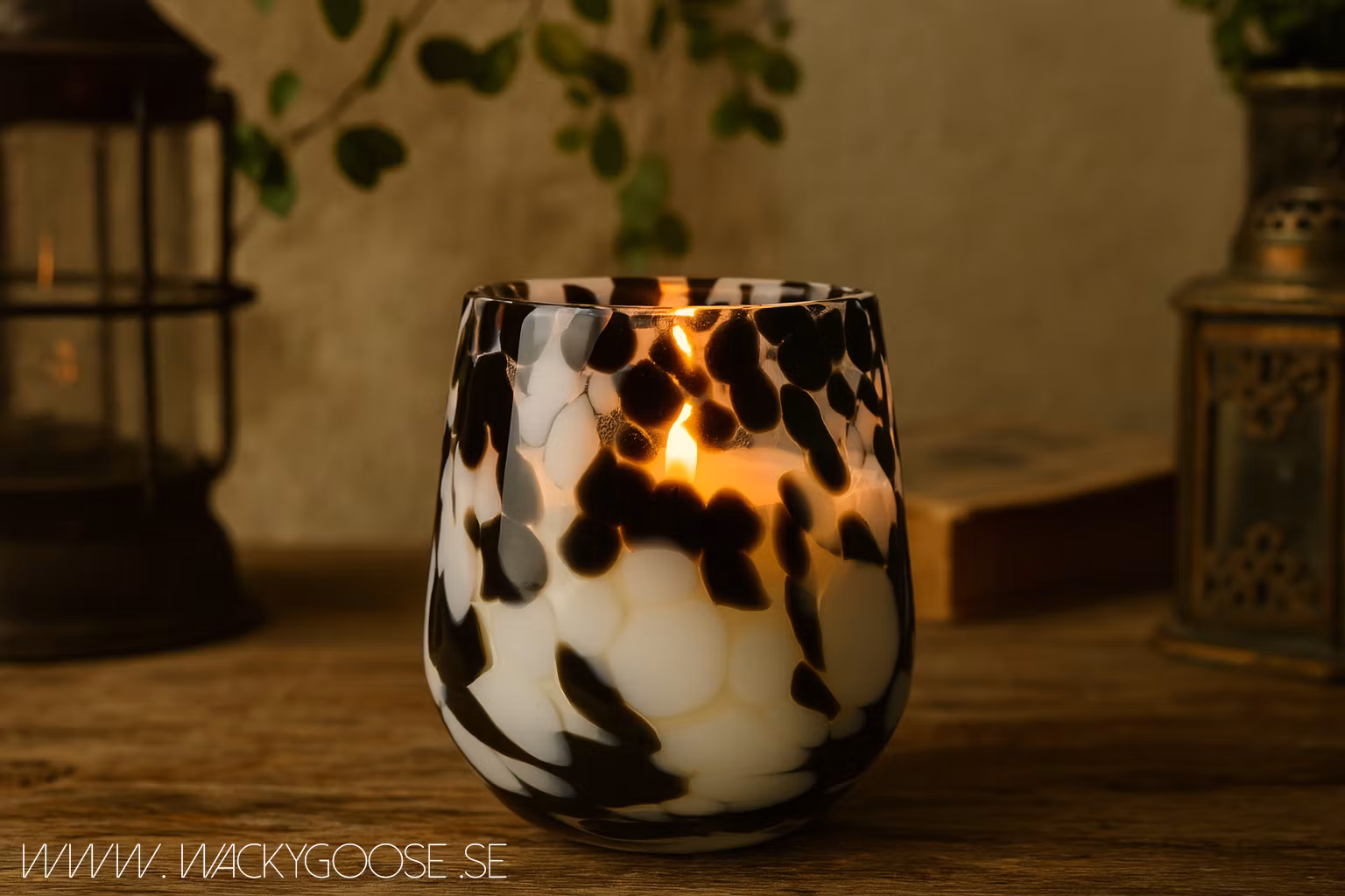Otroligt härligt doftljus i läckraste behållaren av munblåst glas.