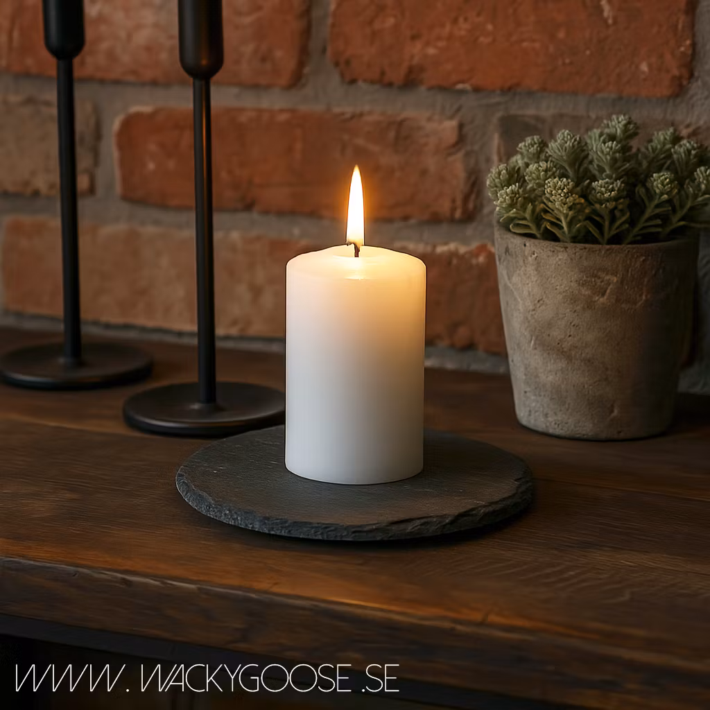 Skiffer är ett naturligt och tidlöst material som kombinerar rustik charm med hållbarhet. Materialet är slitstarkt och värmetåligt, vilket gör det perfekt för både dekorativa syften och praktisk användning, exempelvis som ljusfat eller serveringsunderlägg. Dess naturliga tyngd gör att dekorationer i skiffer står stadigt, och den matta ytan framhäver både ljus och andra inredningsdetaljer på ett stilfullt sätt.