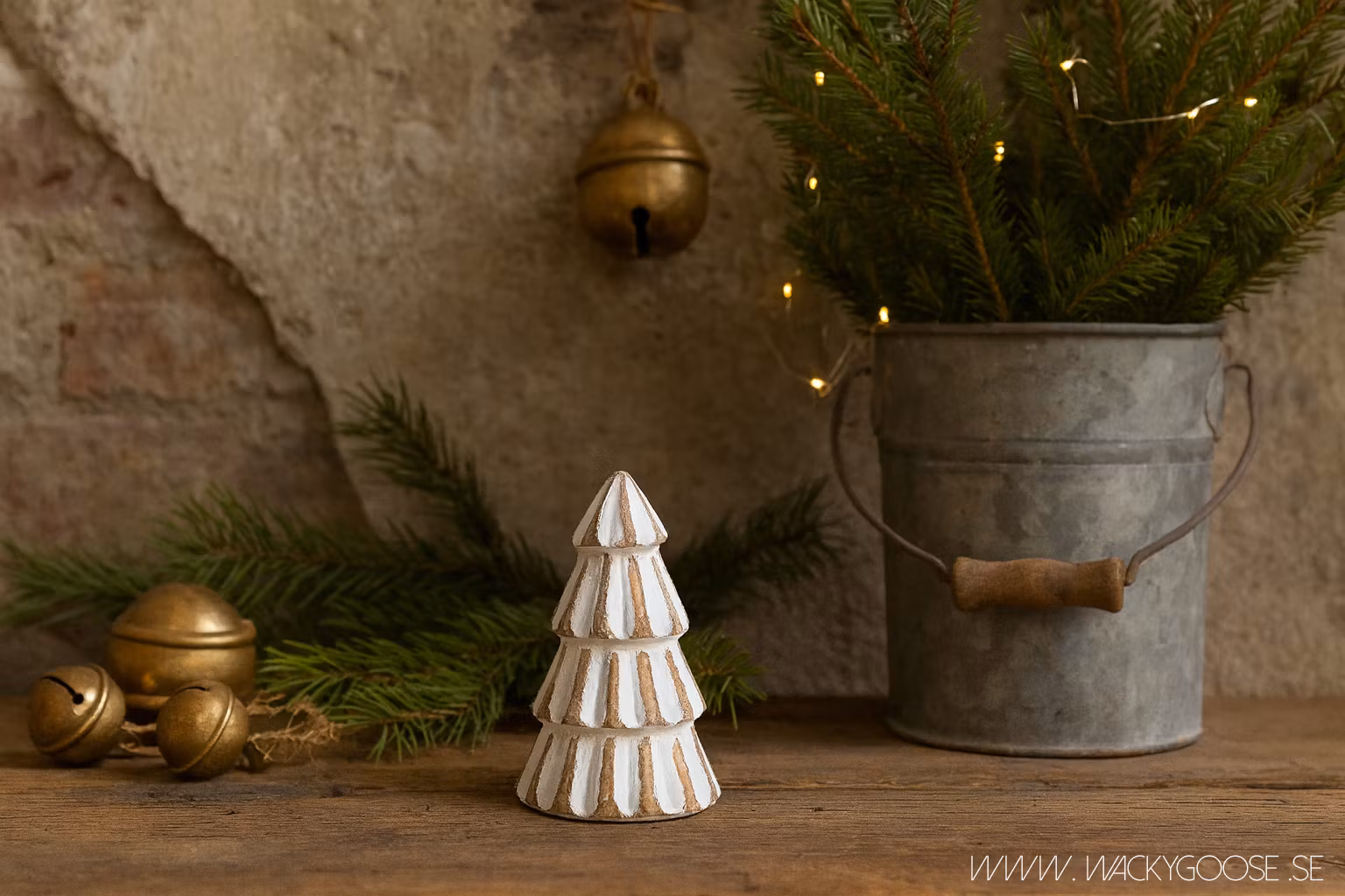 En barrlös julgran som inte kräver vatten - ja tack! Den här dekorationsgranen i trä är ren mysfaktor, perfekt för att skapa en vinterkänsla på bordet, i fönstret - ensam eller som en del av en liten granskog.