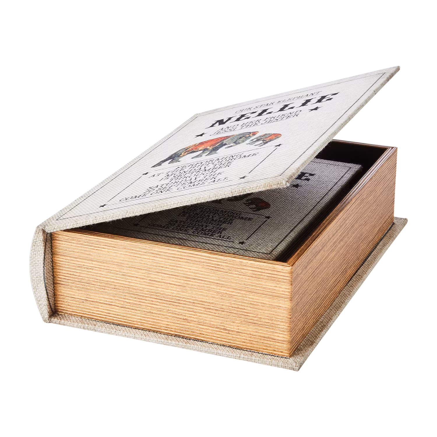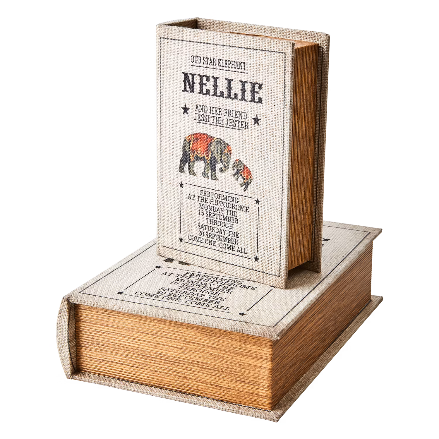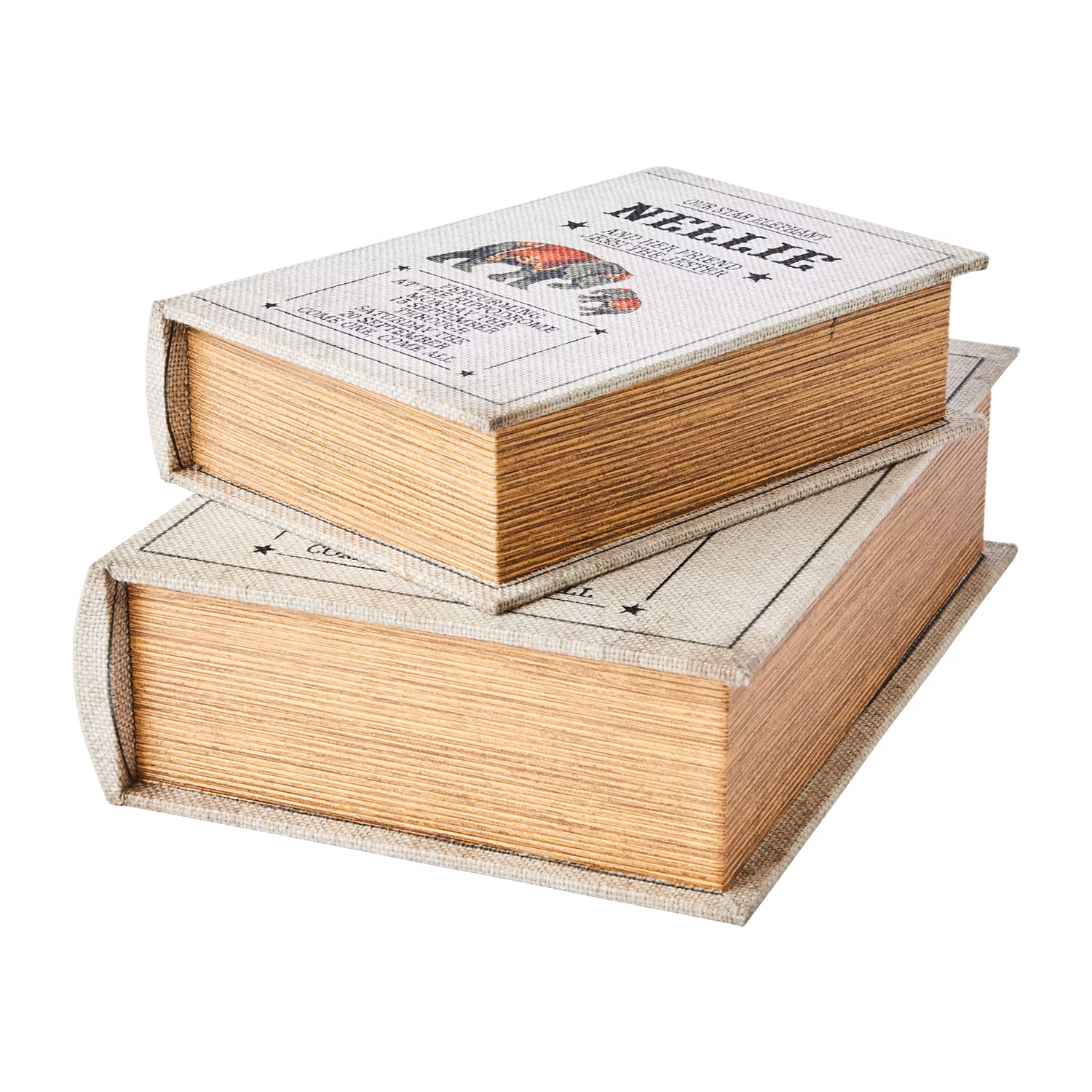 Förvaringslåda i bokform med linnetextil - 2-pack