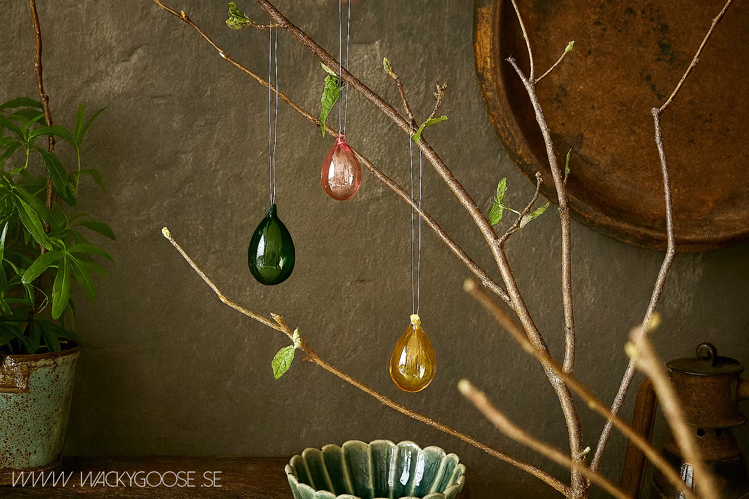 Fantastiskt vackra små glasdekorationer att hänga. De passar superfint att hänga i växtligheter ute i trädgården eller inomhus - och lika bra i påskriset.