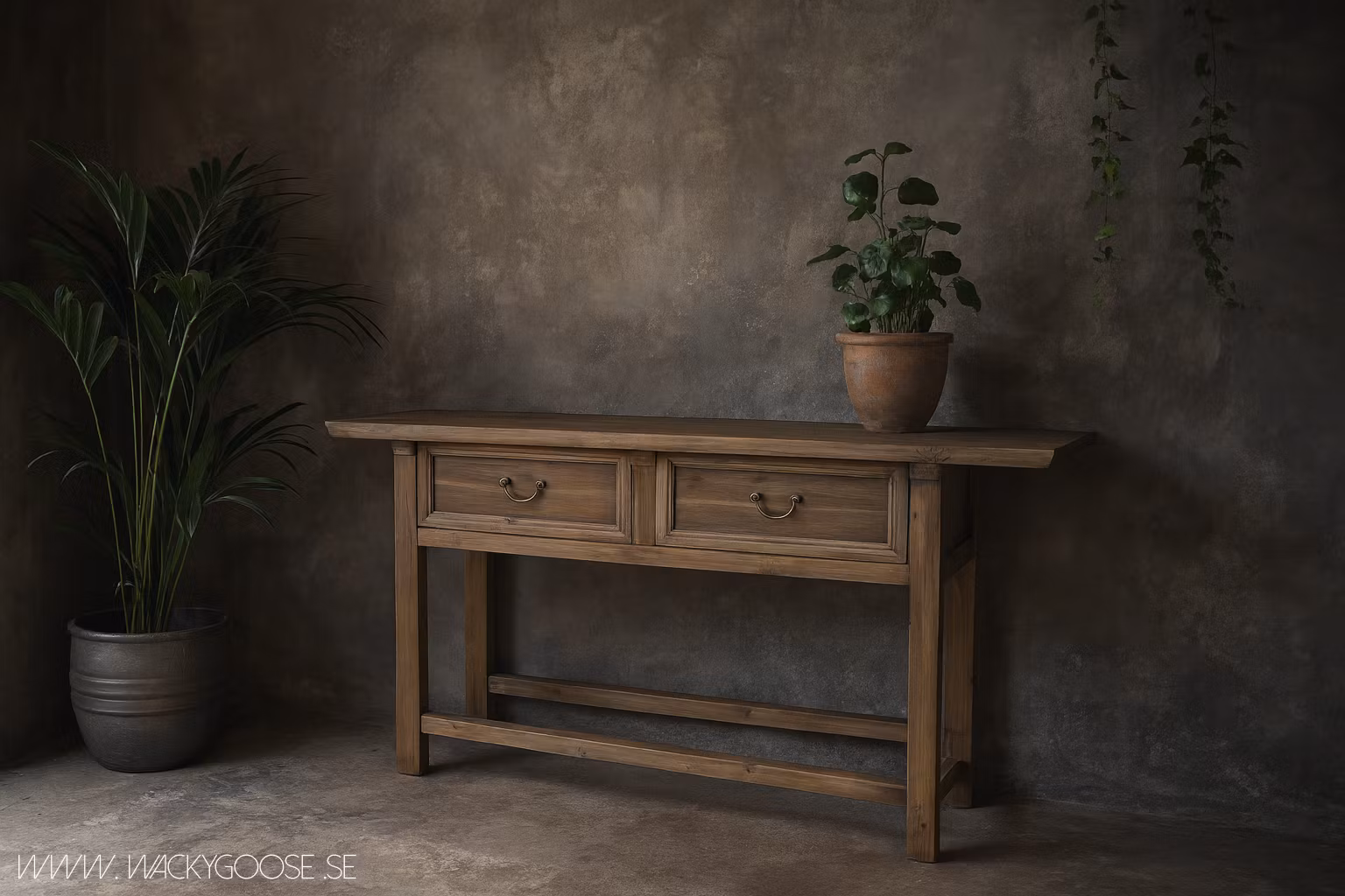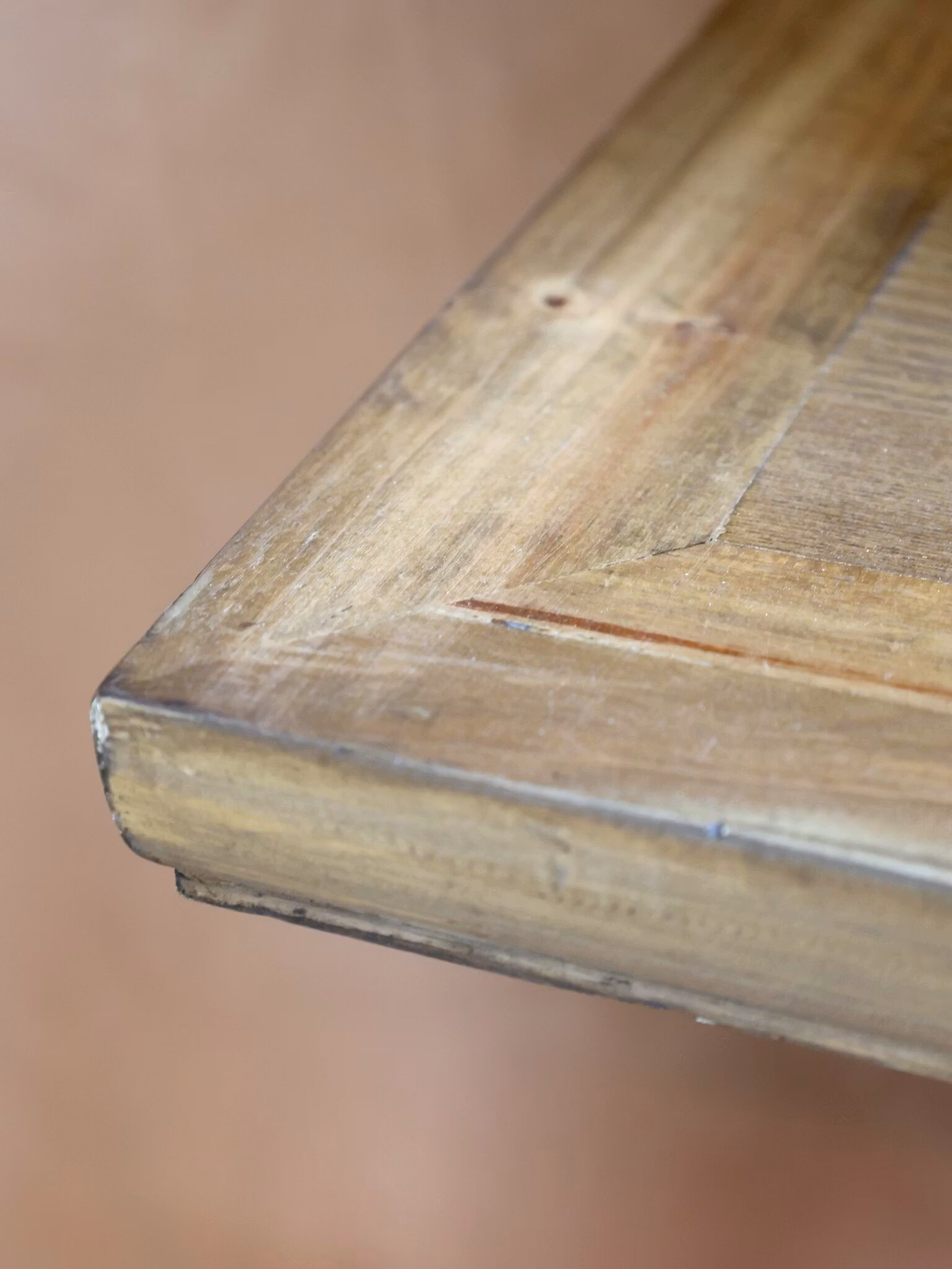 En inbjudande och funktionell möbel i klassisk fransk lantlig stil. Bordet är tillverkat av massivt poppelträ med en varm ton och vackra, synliga ådringar som skapar ett naturligt och tidlöst uttryck. De två rymliga lådorna gör det enkelt att organisera både köksredskap, serveringsutrustning eller små vardagsföremål, så att du alltid har dem till hands.