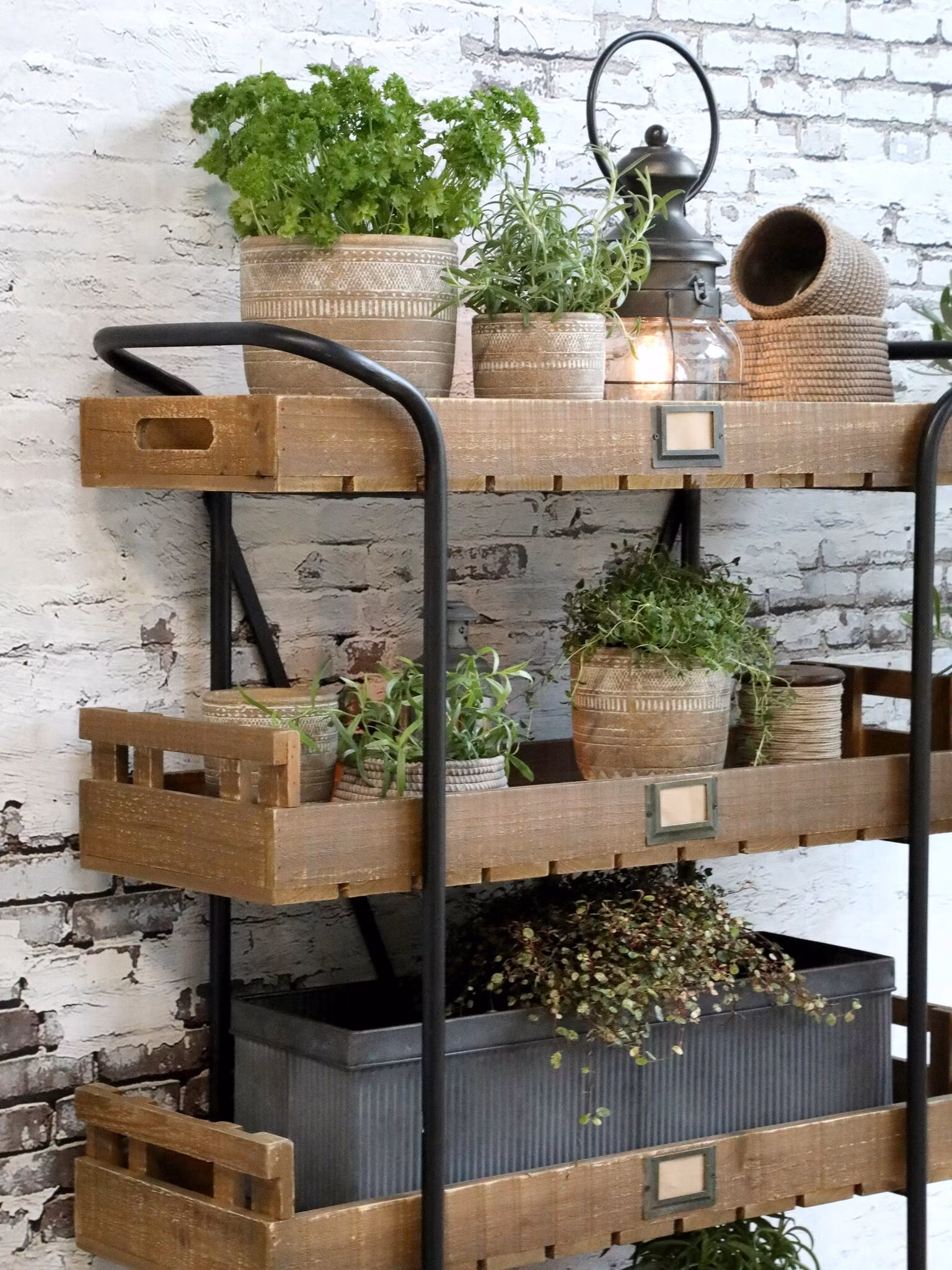 Tack vare hjulen är vagnen lätt att flytta runt. Använd den som ett charmigt växtställ, en kreativ förvaringslösning för ditt kök eller en snygg drinkvagn. Oavsett om den är stylad med örter, korgar eller dekorativa föremål blir denna mångsidiga vagn ett riktigt blickfång i vilket rum som helst.