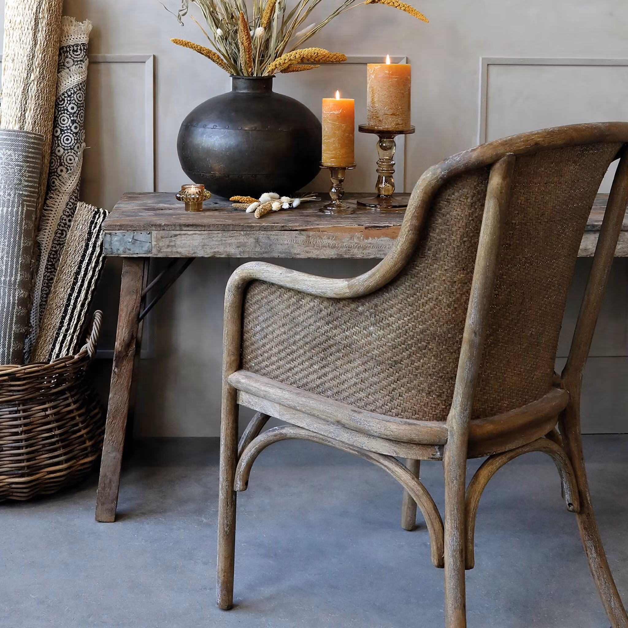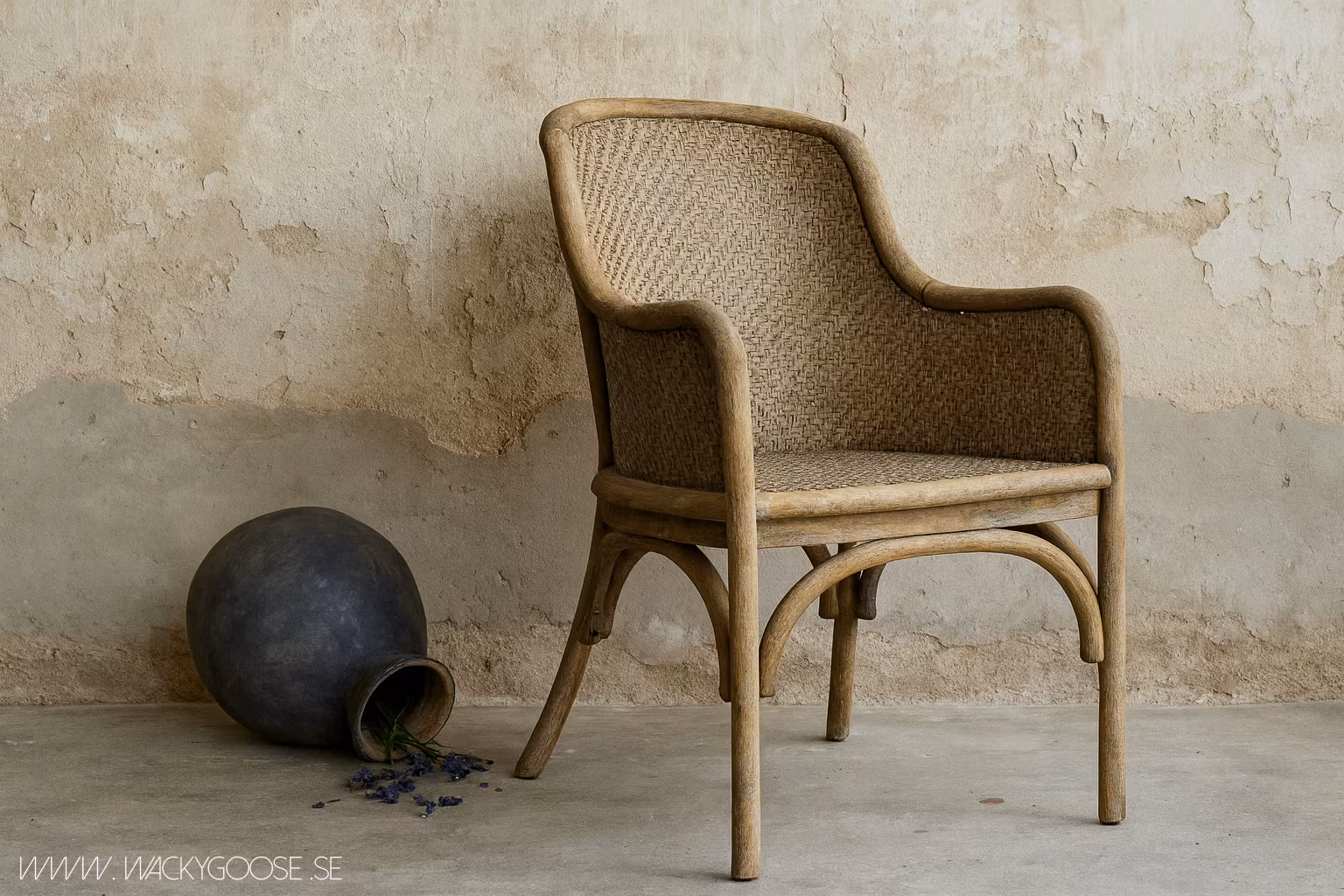 Ge ditt hem en tidlös känsla med denna vackra karmstol i fransk lantstil. Den klassiska designen kombinerar robust träram med en elegant rottingsits som både är bekväm och stilfull. Perfekta för både matsal och kök, men passar även utmärkt som dekorativa stolar i hall eller vardagsrum.