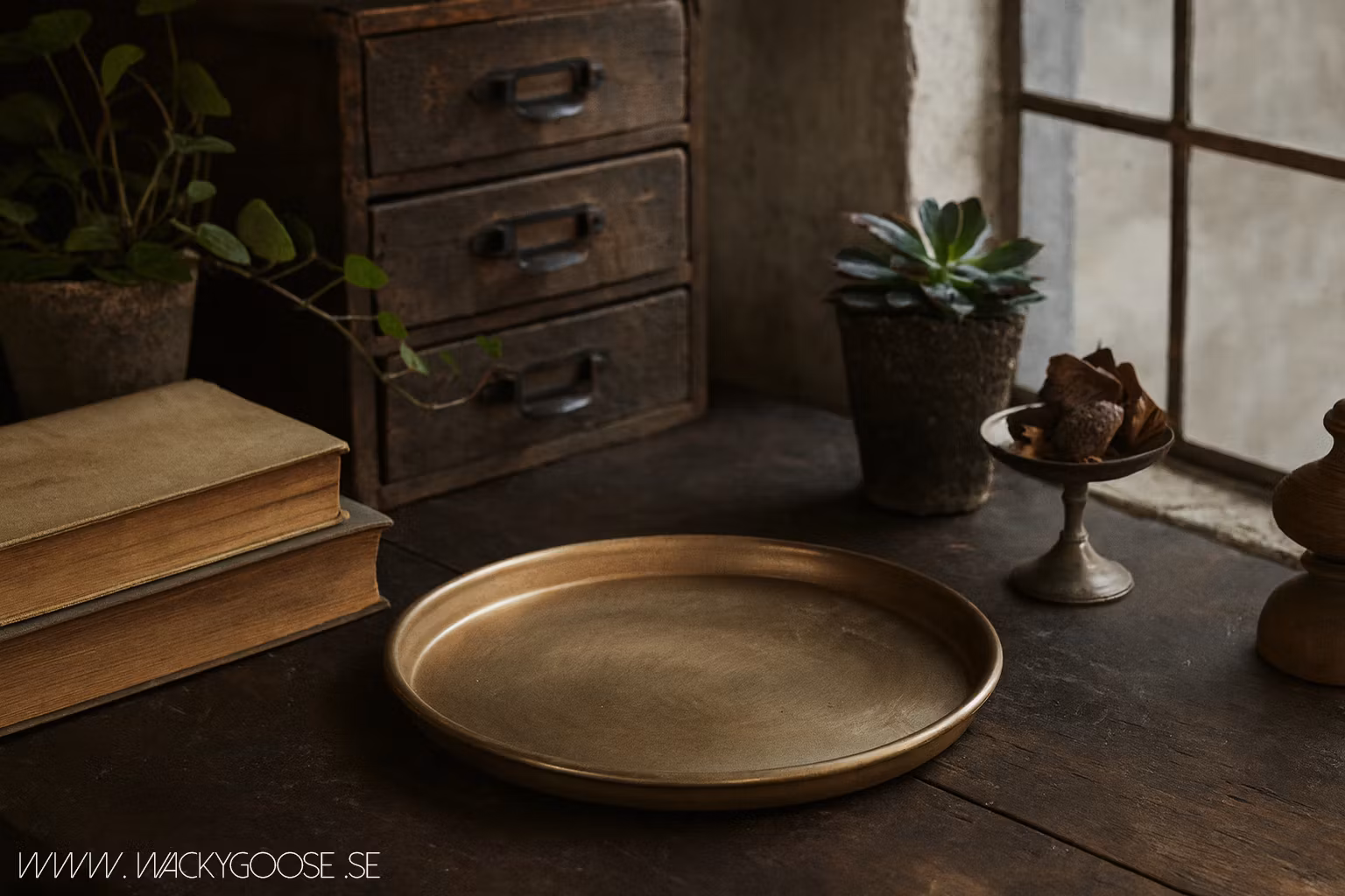 Ett exklusivt, handgjort fat i mässing som kombinerar tidlös elegans med funktionalitet. Den varma mässingstonen ger en lyxig och inbjudande känsla, perfekt för att framhäva blockljus, små arrangemang eller dekorativa detaljer.