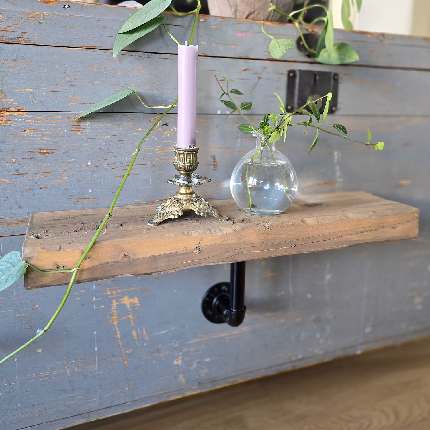 Härlig vägghylla i industriell stil.