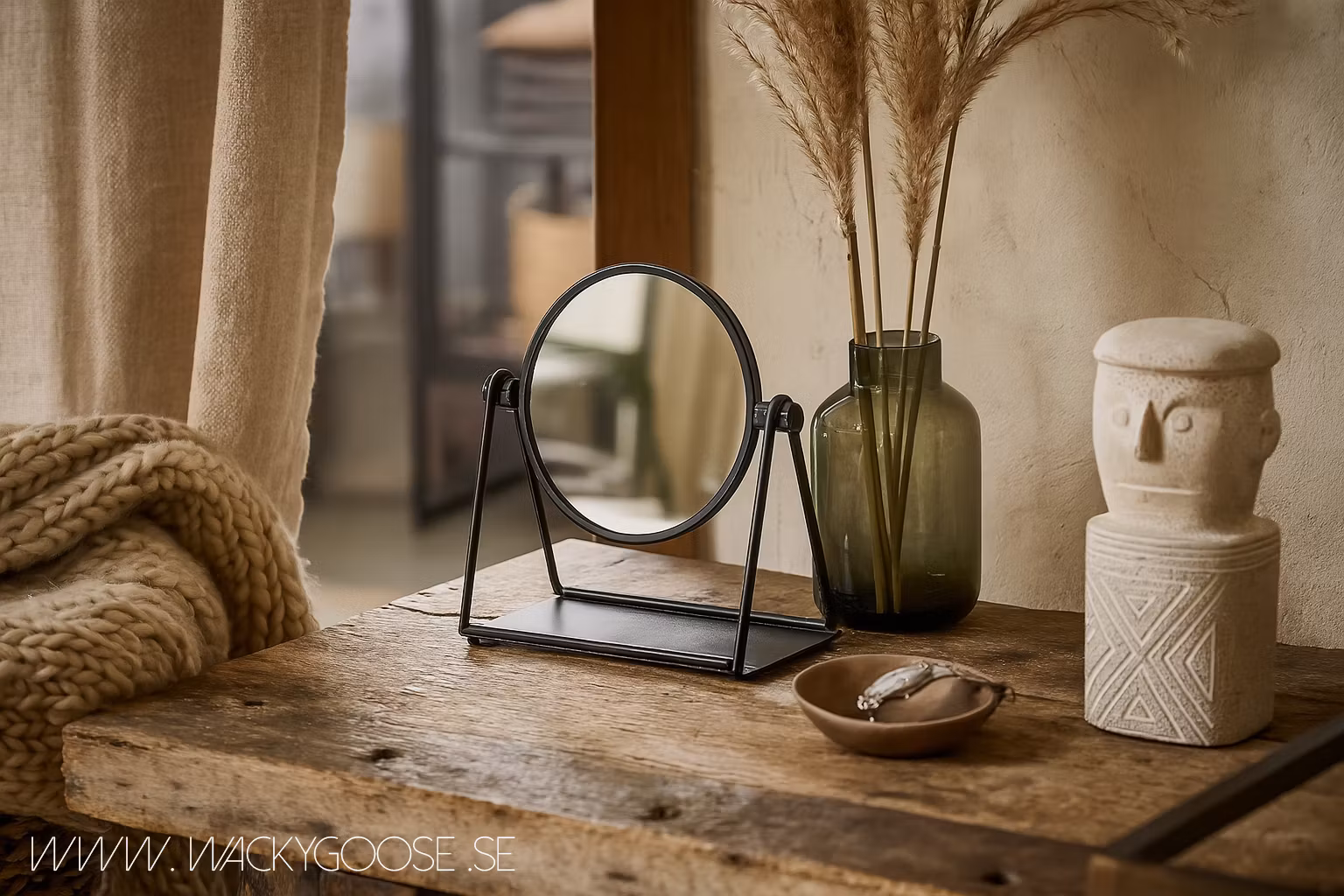 Spegel i järn S, Svart 199 kr I lager. Lägg i korgen Dela Produktbeskrivning Recensioner Vacker och stilren bordsspegel i järn.L13xW7xH14 cmVarumärke: Affari