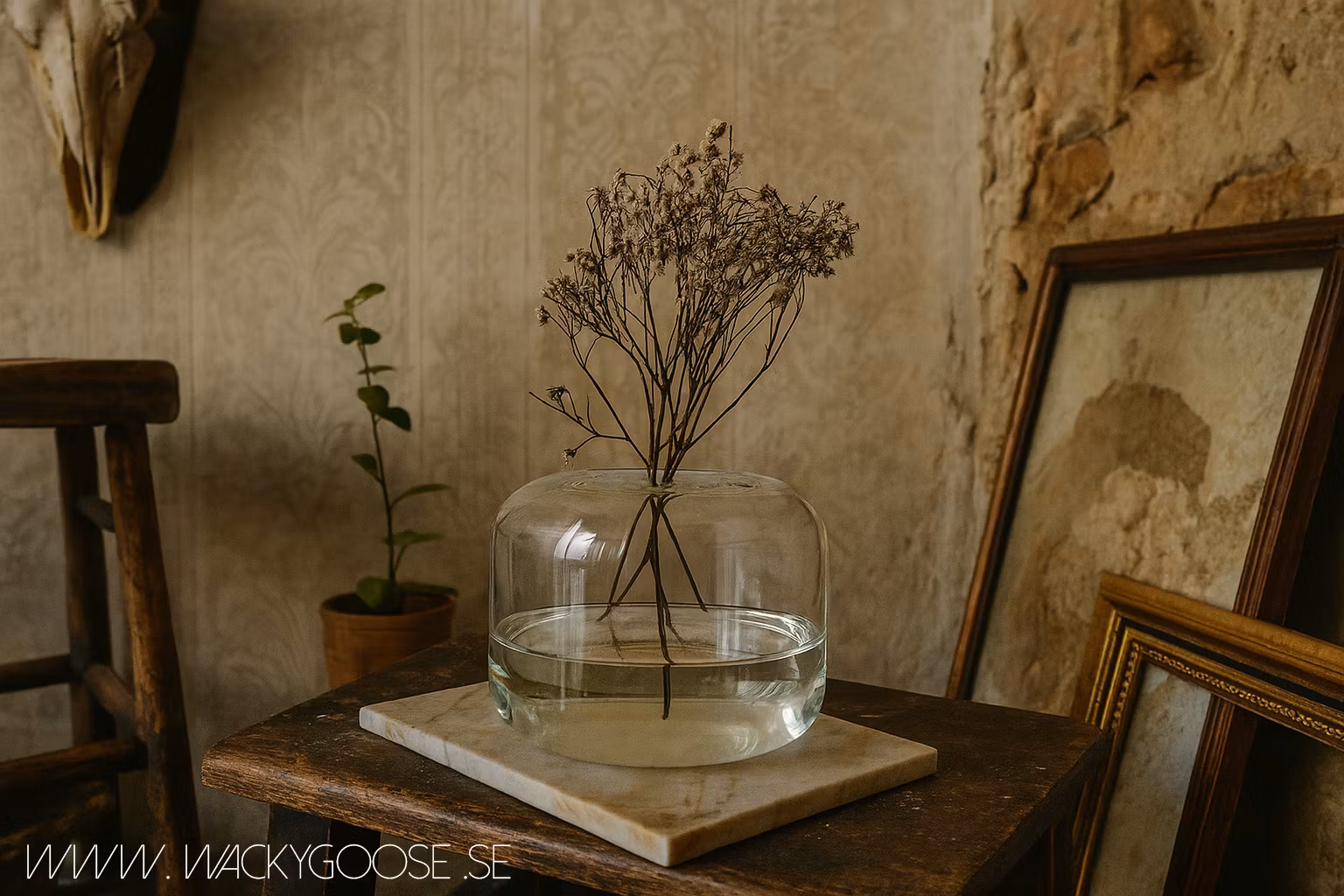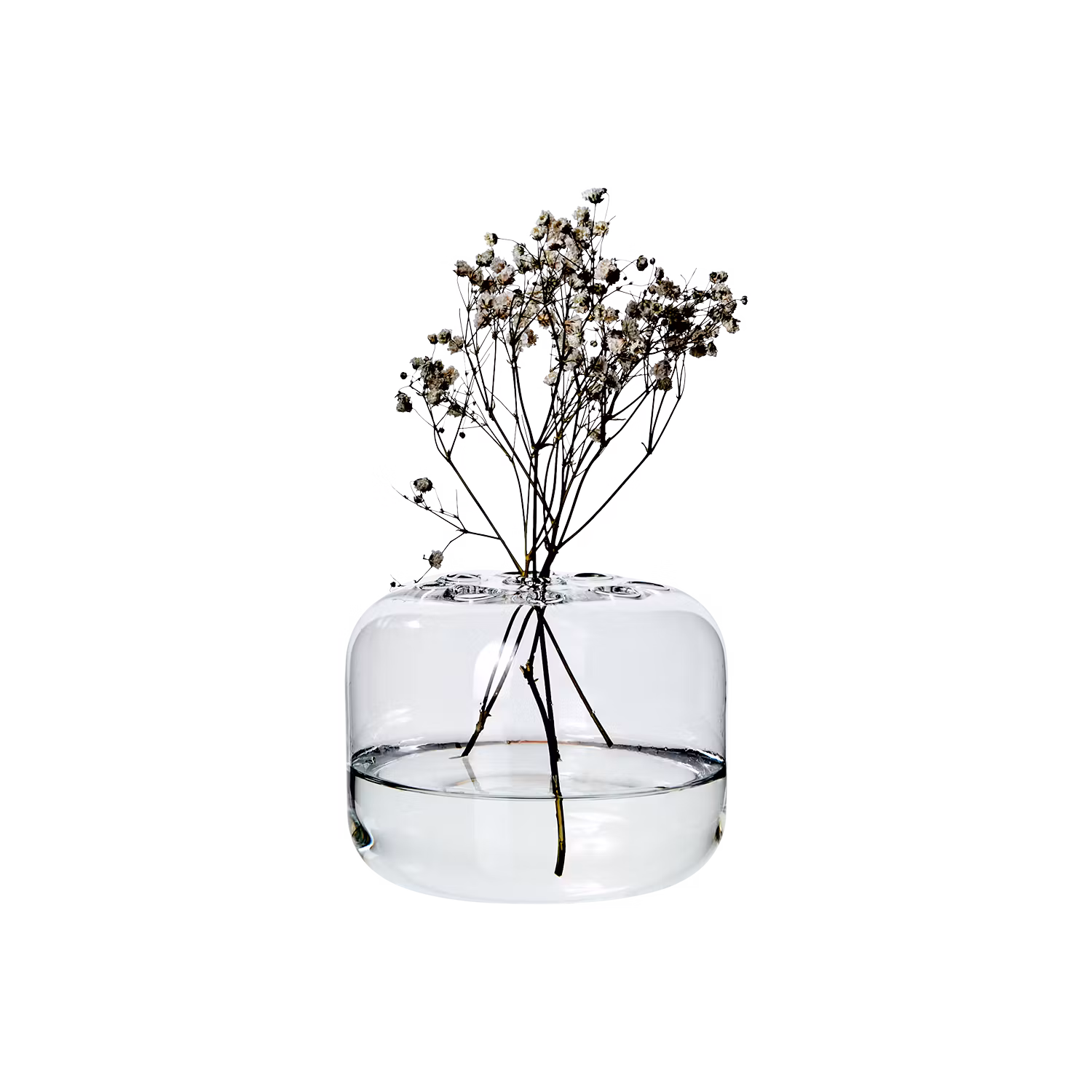 Munblåst. Bubblor och ojämnheter kan förekomma.