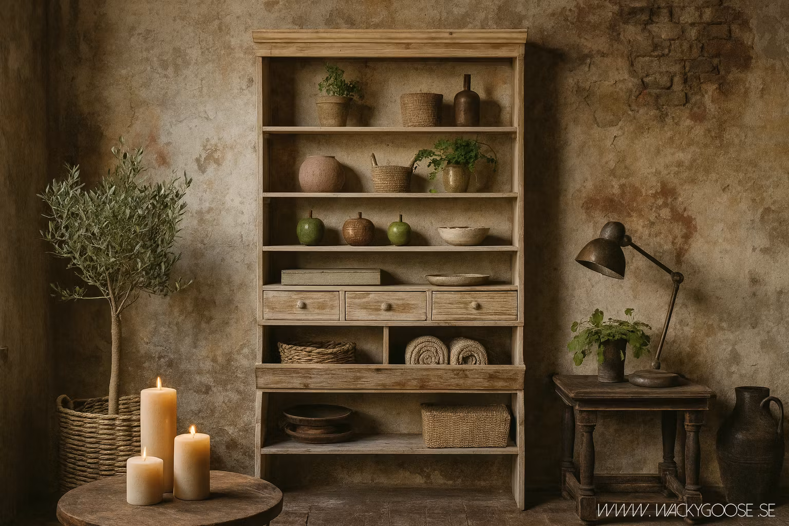 Varje hyllplan har en maxvikt på 10kg, vilket gör den perfekt för böcker, porslin, glas, prydnadsföremål eller köksdetaljer. Den robusta konstruktionen och den vackra antika finishen gör att hyllan passar lika bra i lantliga hem som i industriella miljöer.