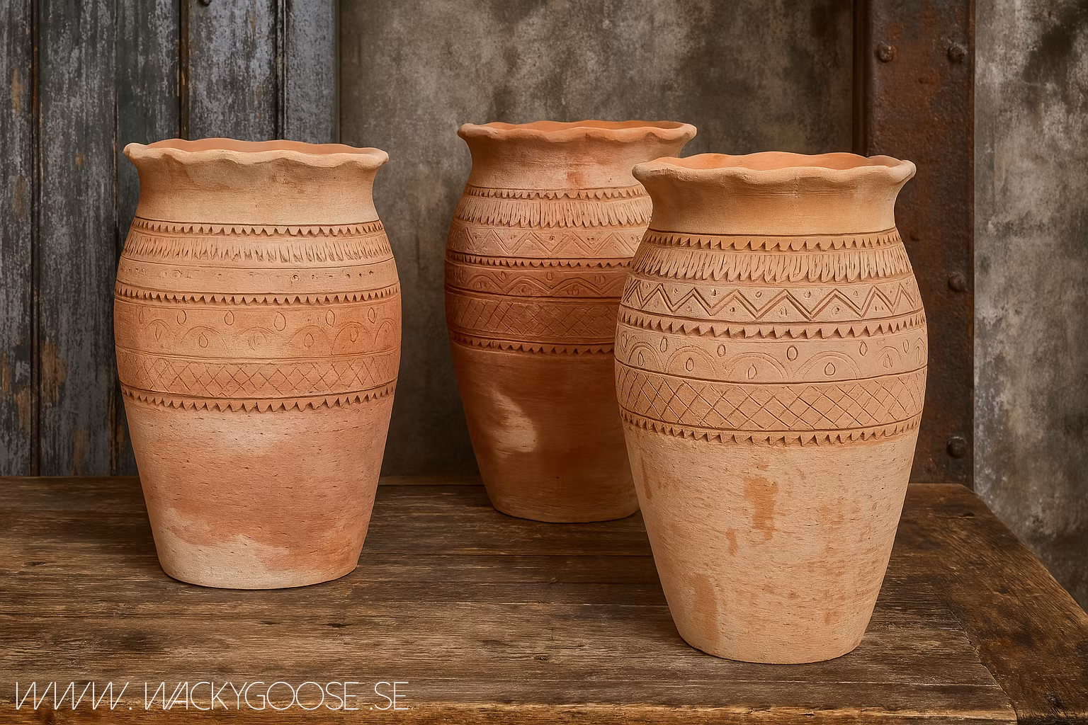 Handgjord, färg, form och storlek kan variera. Poröst material, använd vattentäta fat för att undvika fläckar.
