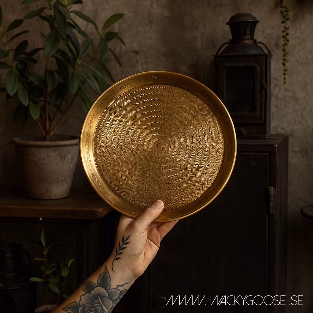 Ge din inredning en varm och lyxig känsla med detta vackra dekorationsfat i färgat aluminium. Den eleganta formen och den mjukt skimrande ytan gör det perfekt för att framhäva ljus, små vaser eller dekorativa detaljer.