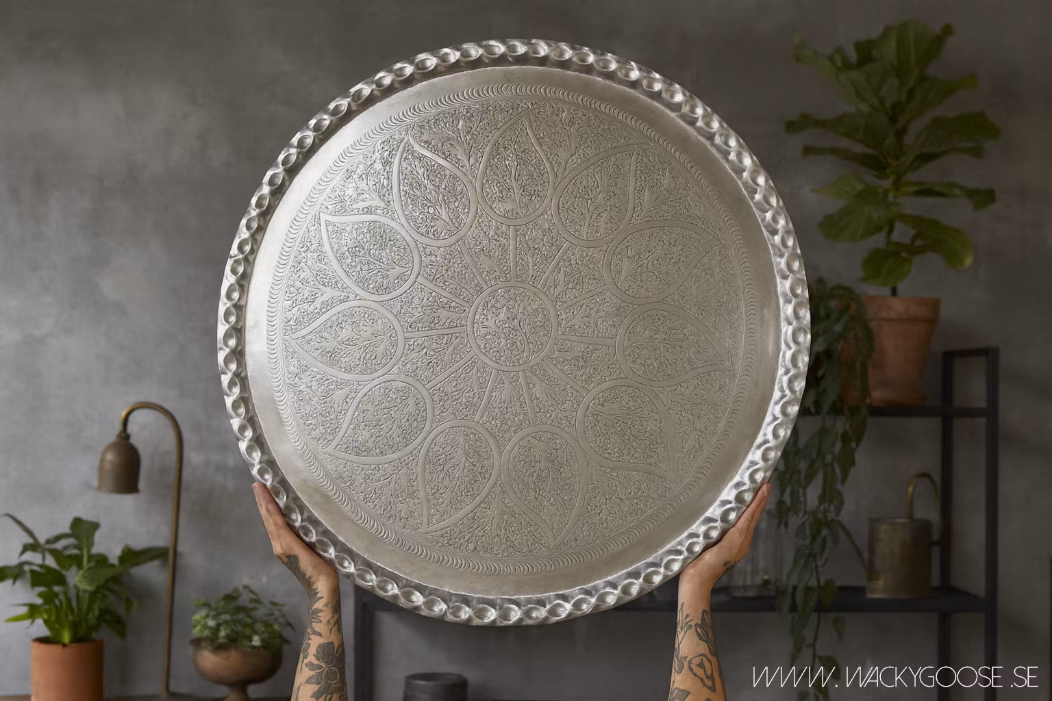 Tillverkat i lätt och hållbart aluminium som är enkelt att flytta och placera om. De diskreta mönstren på ytan ger en tidlös look som passar lika bra i modern som rustik och bohemisk stil.