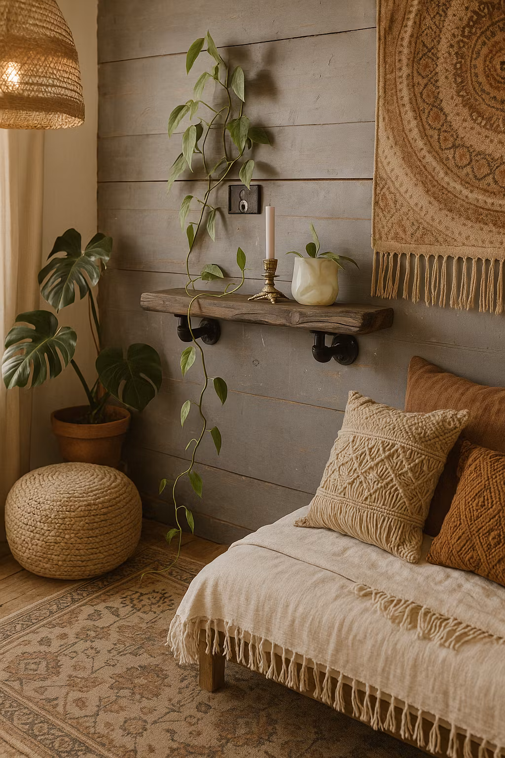 Härlig vägghylla i industriell stil.