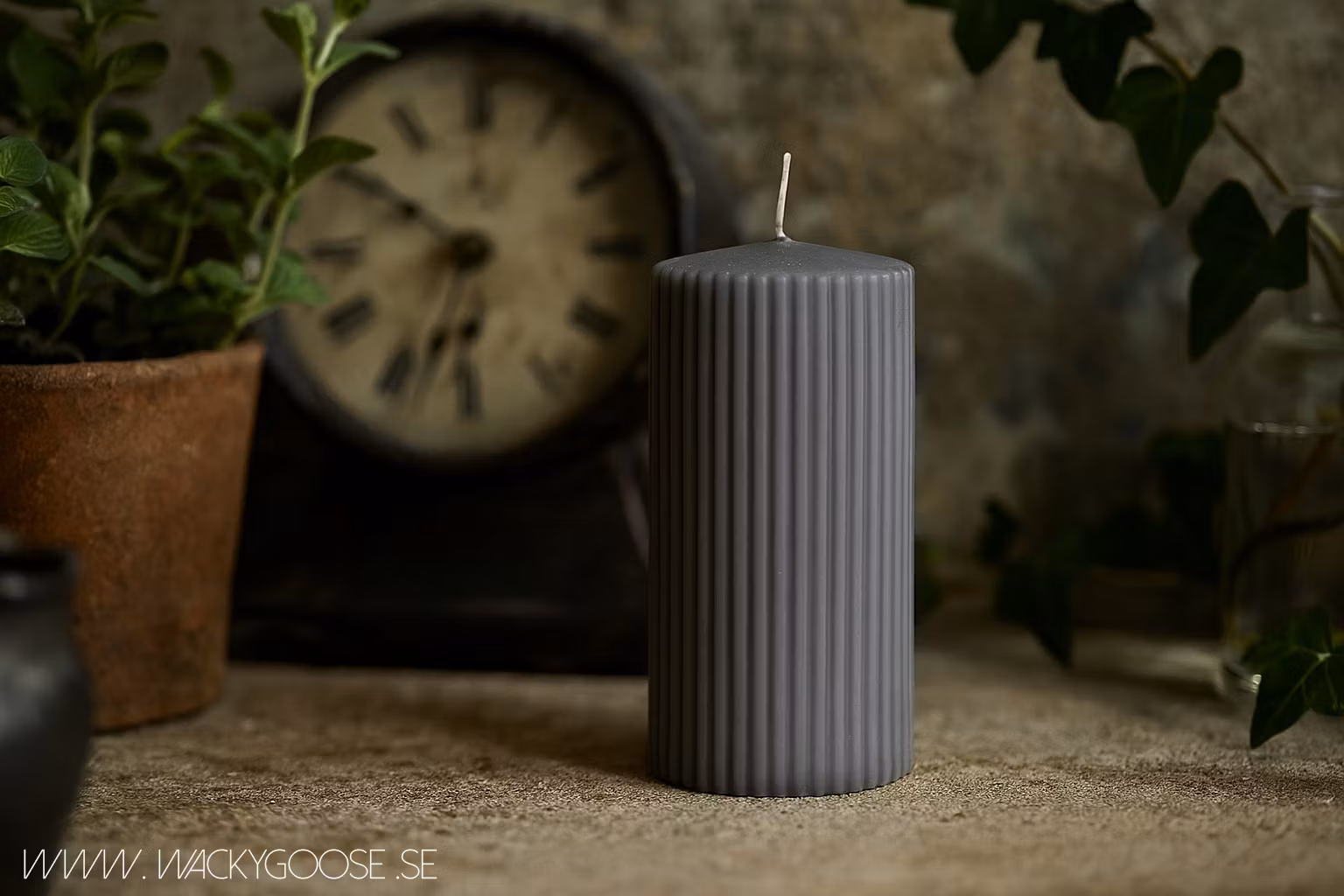 Dekorativt blockljus med ett mjukt vågigt mönster som ger ett lättsamt och levande uttryck. Passar in i alla inredningsstilar och att mixa olika färger och höjder på ljus i en grupp sätter definitivt ribban för en hög mysfaktor i vilket hem som helt.