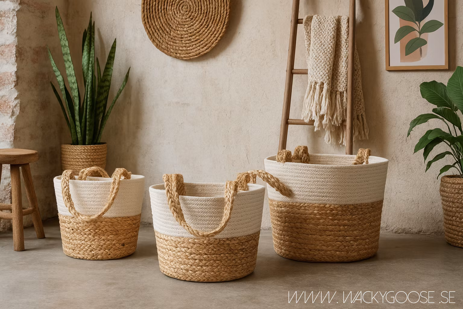 Väska, set om 3, Natur/vit 499 kr I lager. Lägg i korgen Dela Produktbeskrivning Recensioner Material Jute, bomullL29xW15xH22/40 cm, L33xW17xH22/40 cm, L35xW19xH24/42 cmVarumärke: Affari