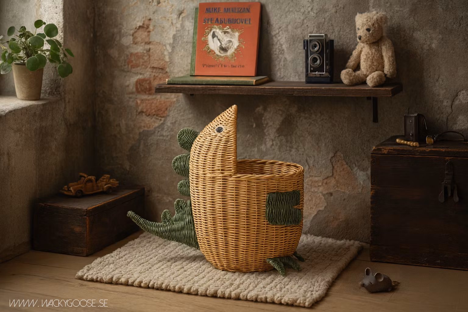 Eddi Basket från Bloomingville MINI är en söt förvaringskorg i rotting formad som en dinosaurie. Korgen är perfekt för att förvara alla dina saker i vardagsrummet, sovrummet eller i barnrummet.