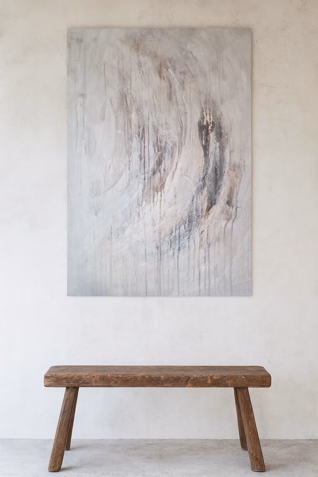 Tavlan är handmålad och har en taktil, strukturerad yta som gör den helt unik. Den neutrala färgpaletten gör att den smälter in harmoniskt i både bohemisk, minimalistisk, rustik och modern inredning.