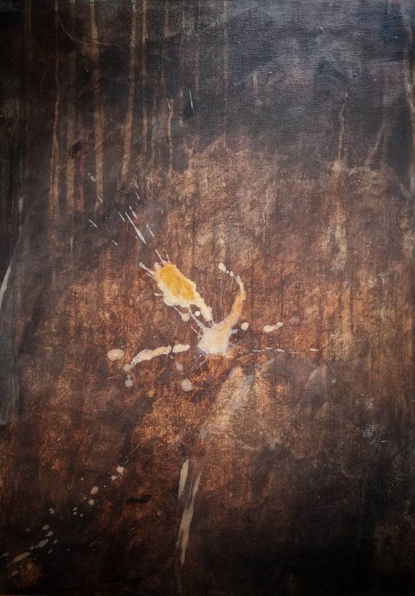 "Burning Sky" från min serie 'Hippie Road' är en abstrakt målning inspirerad av eld, skymning och elementens otämjda skönhet. Eldiga toner av orange, guld och lera reser sig mot mörkare skuggor.