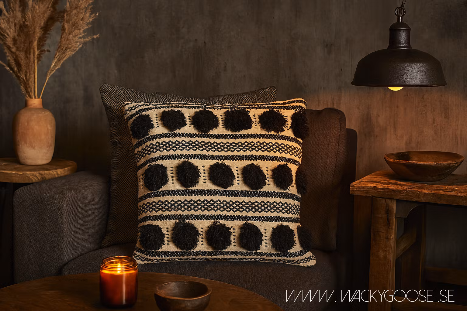 Detta kuddfodral kombinerar rustik charm med modern textildesign och blir snabbt en favorit i både lantlig och industriell inredning. Perfekt för dig som vill addera värme och personlighet till ditt hem - året om.