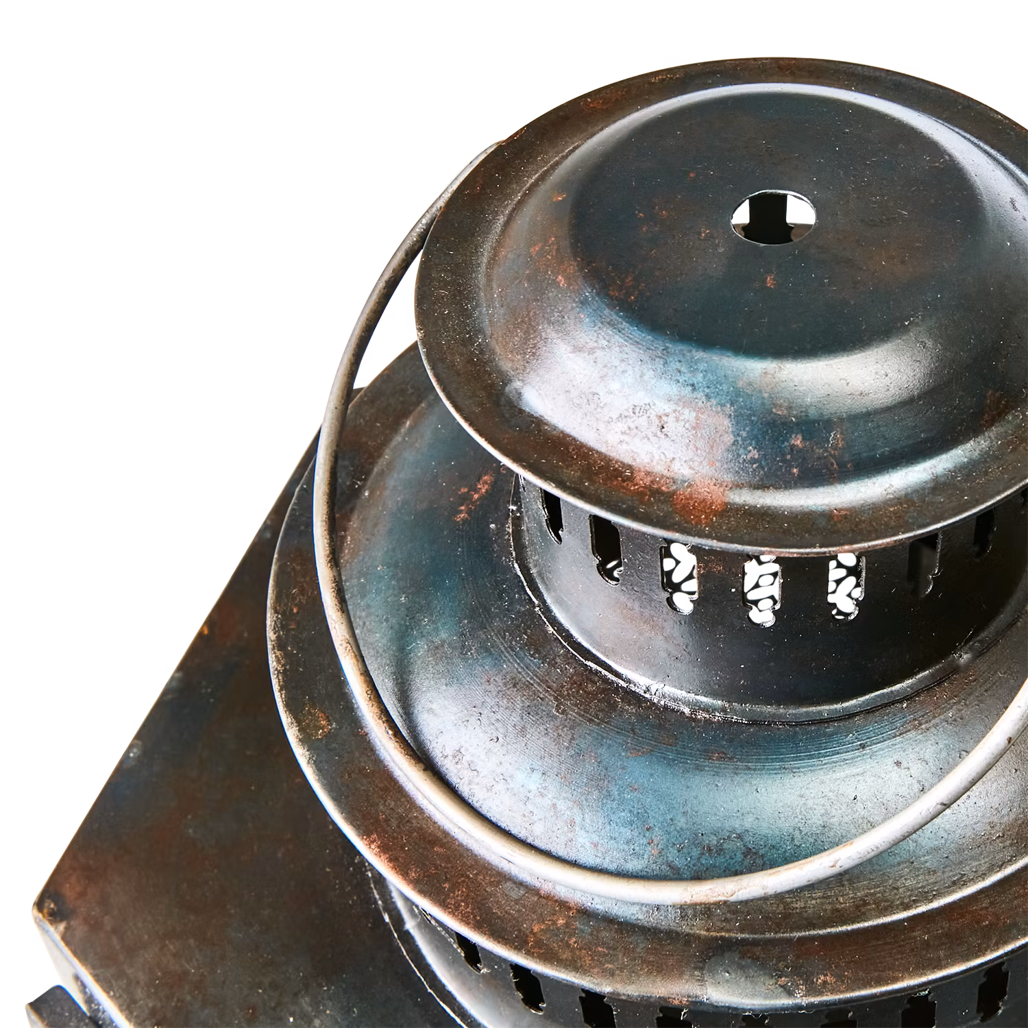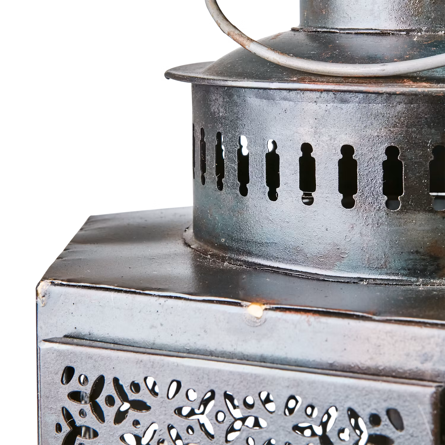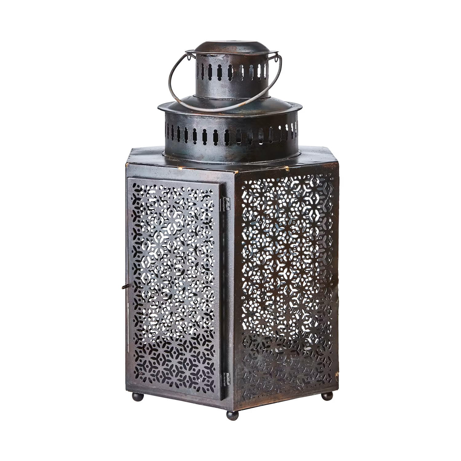 En vacker och bohemisk lykta tillverkad i järn med stansat mönster som sprider ett stämningsfullt ljusspel. Den rustika designen kombinerar råa metallinslag med mjuka former, vilket ger en varm och inbjudande atmosfär. Perfekt som dekorativ detalj på fönsterbrädan, soffbordet, golvet eller hängande i en krok.