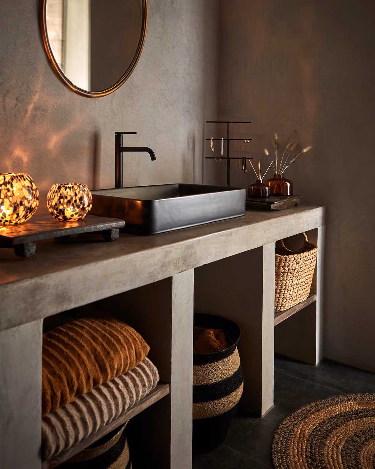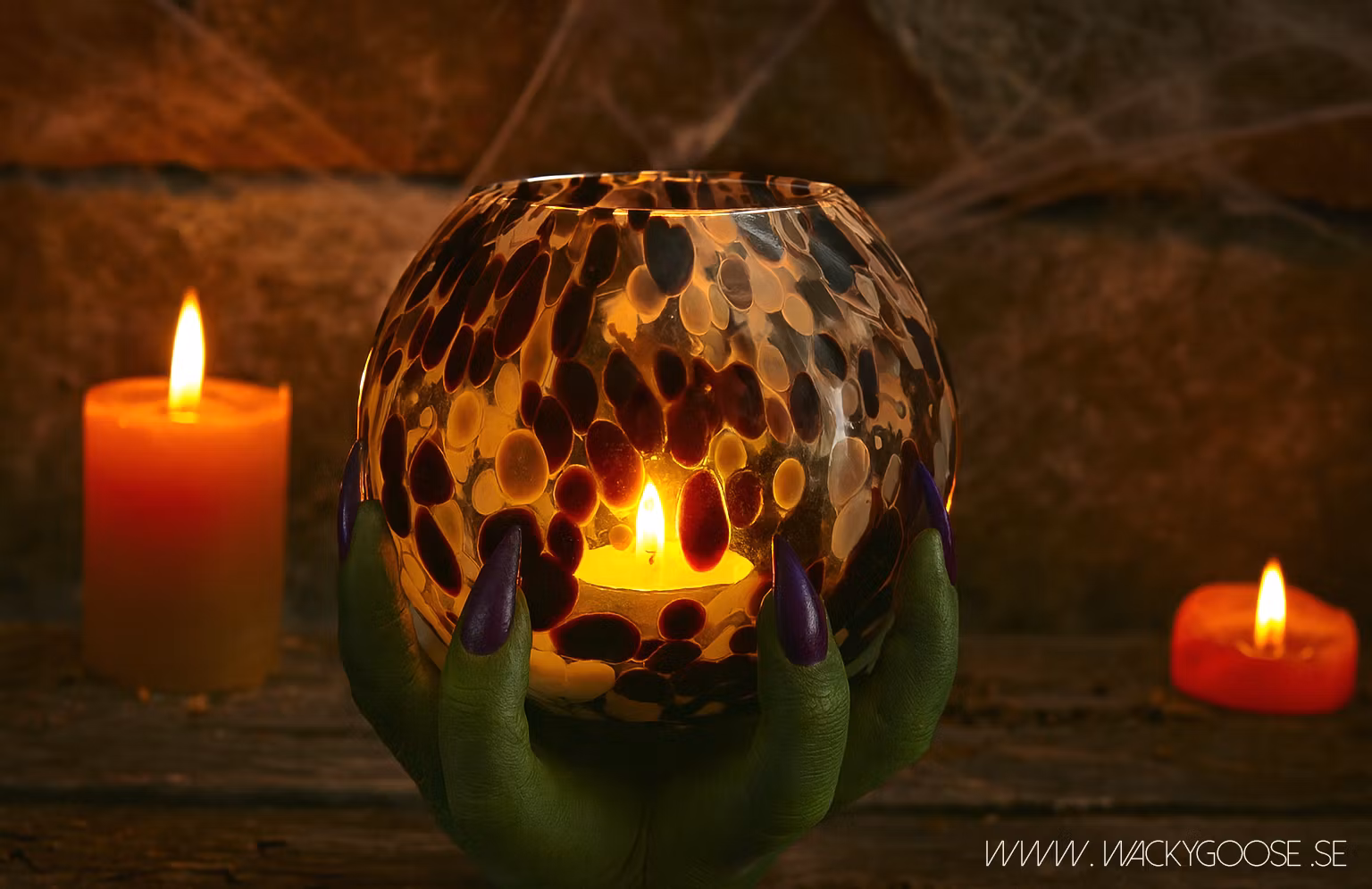 Munblåst Värmeljushållare Ø15cm, Brun/beige/svart