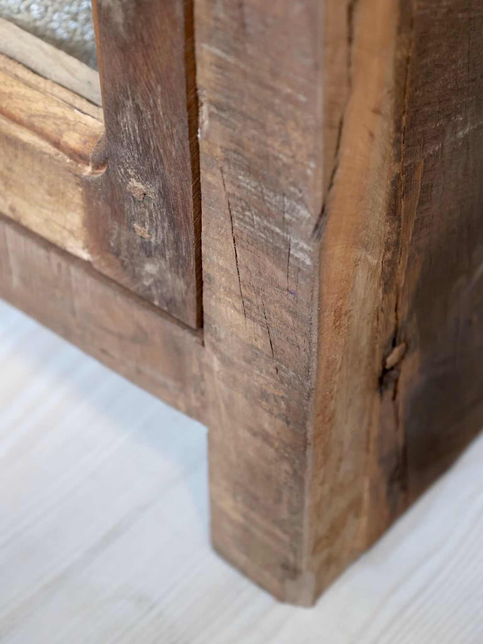 Den återvunna träråvaran ger varje skåp en unik färgskiftning och struktur - inget exemplar är det andra likt. Detta gör att möbeln inte bara är funktionell, utan också ett miljövänligt och personligt val för ditt hem.