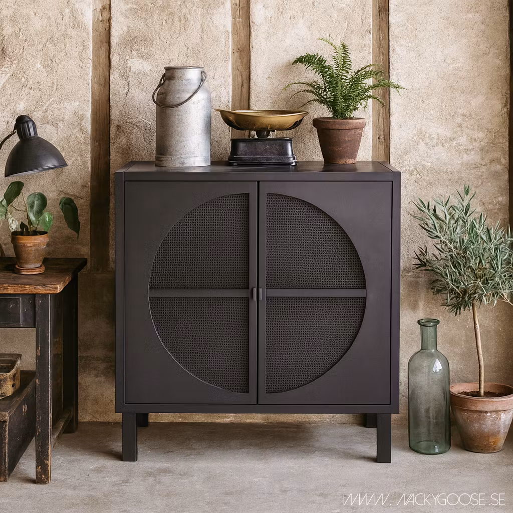 Rymlig trämöbel i svart, 100cm 9 199 kr I lager. Lägg i korgen Dela Produktbeskrivning Recensioner Trento-skåpet från Bloomingville är en rymlig trämöbel med en dörr av rotting i en varm svart färg och cool design. Skåpet har två fasta hyllplan inuti och magnetisk stängning.L105xH100xB40 cm