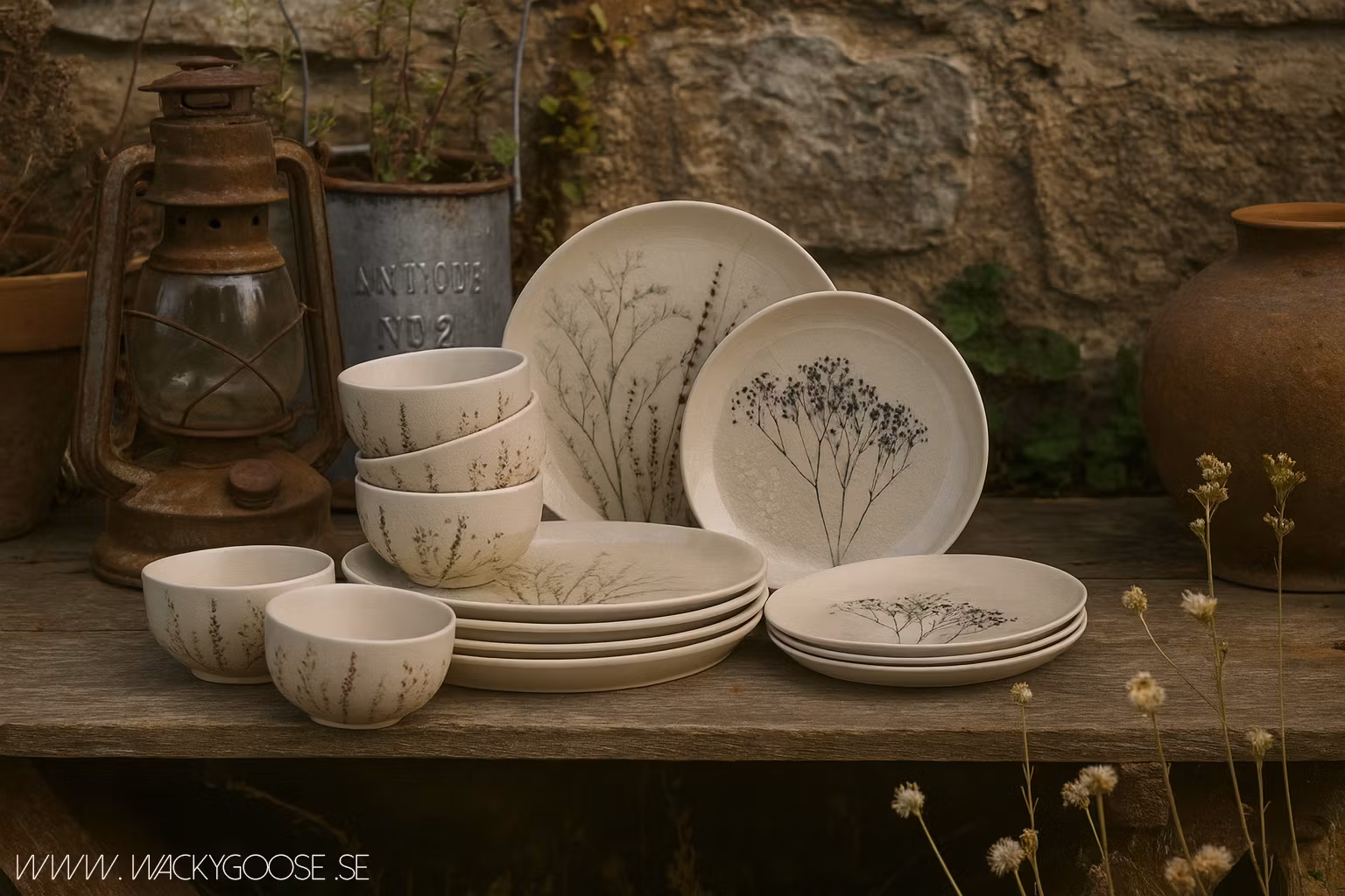 Bea-servisen från Bloomingville har en delikat handmålat blommönster, vilket gör den till en elegant uppsättning som passar både vardagsbruk och speciella tillfällen. Den fina, krackelerade designen ger en texturerad dimension till den beige basen. De handmålade detaljerna säkerställer att varje del i kollektionen är unik och ger en personlig touch till din dukning.